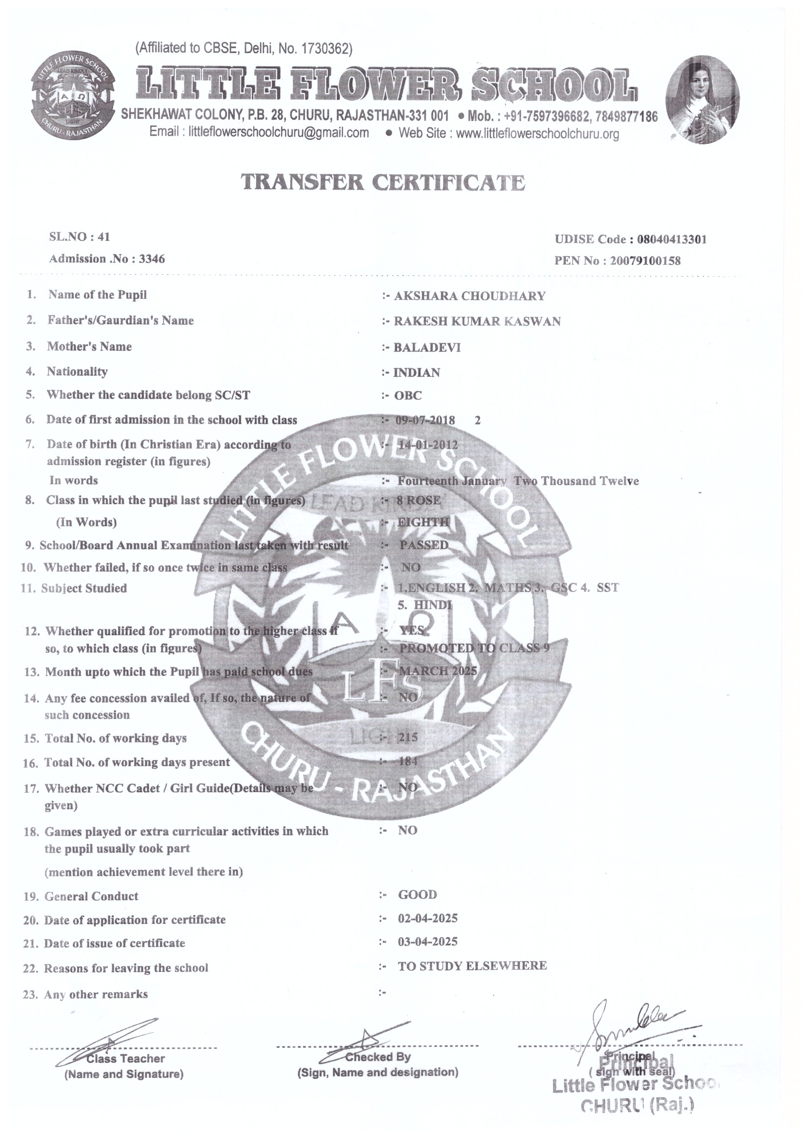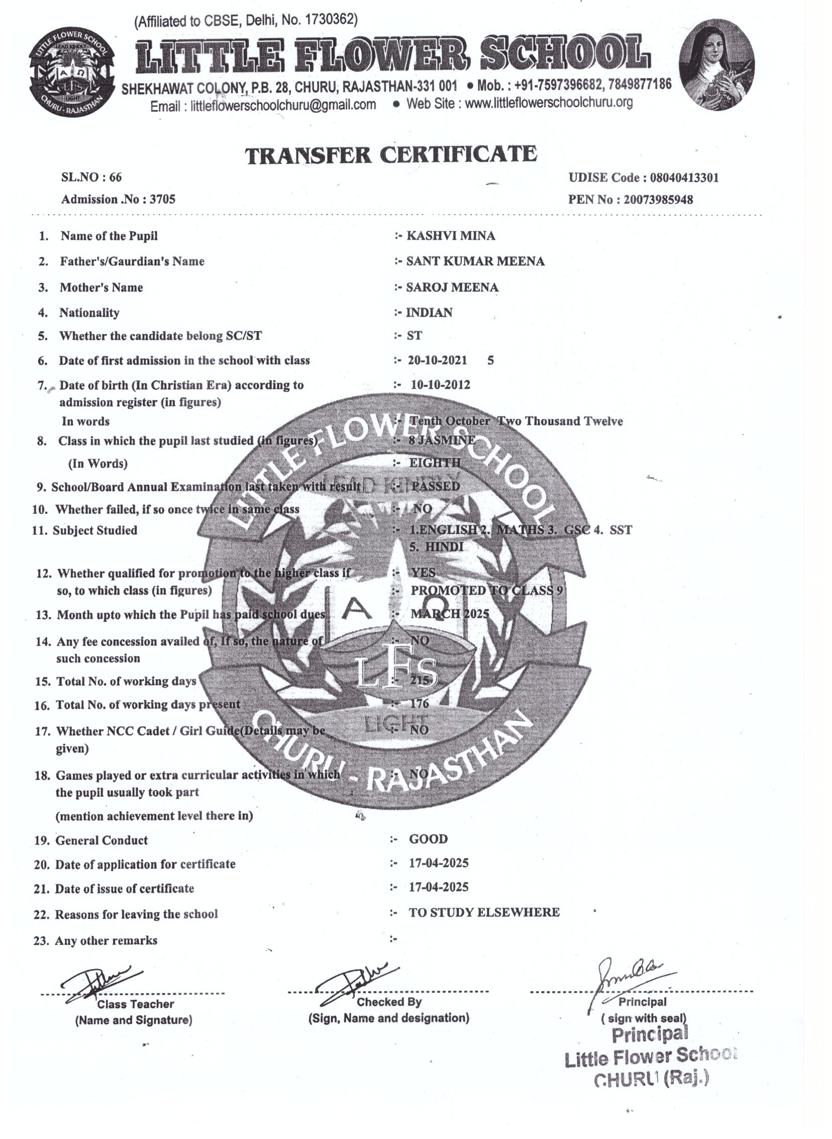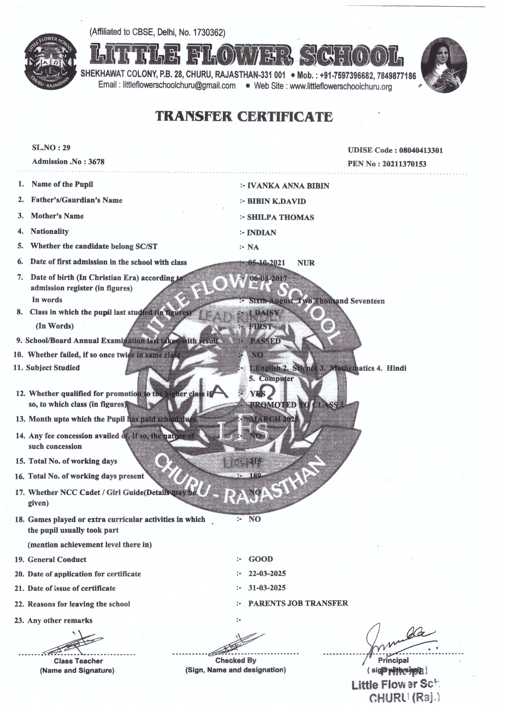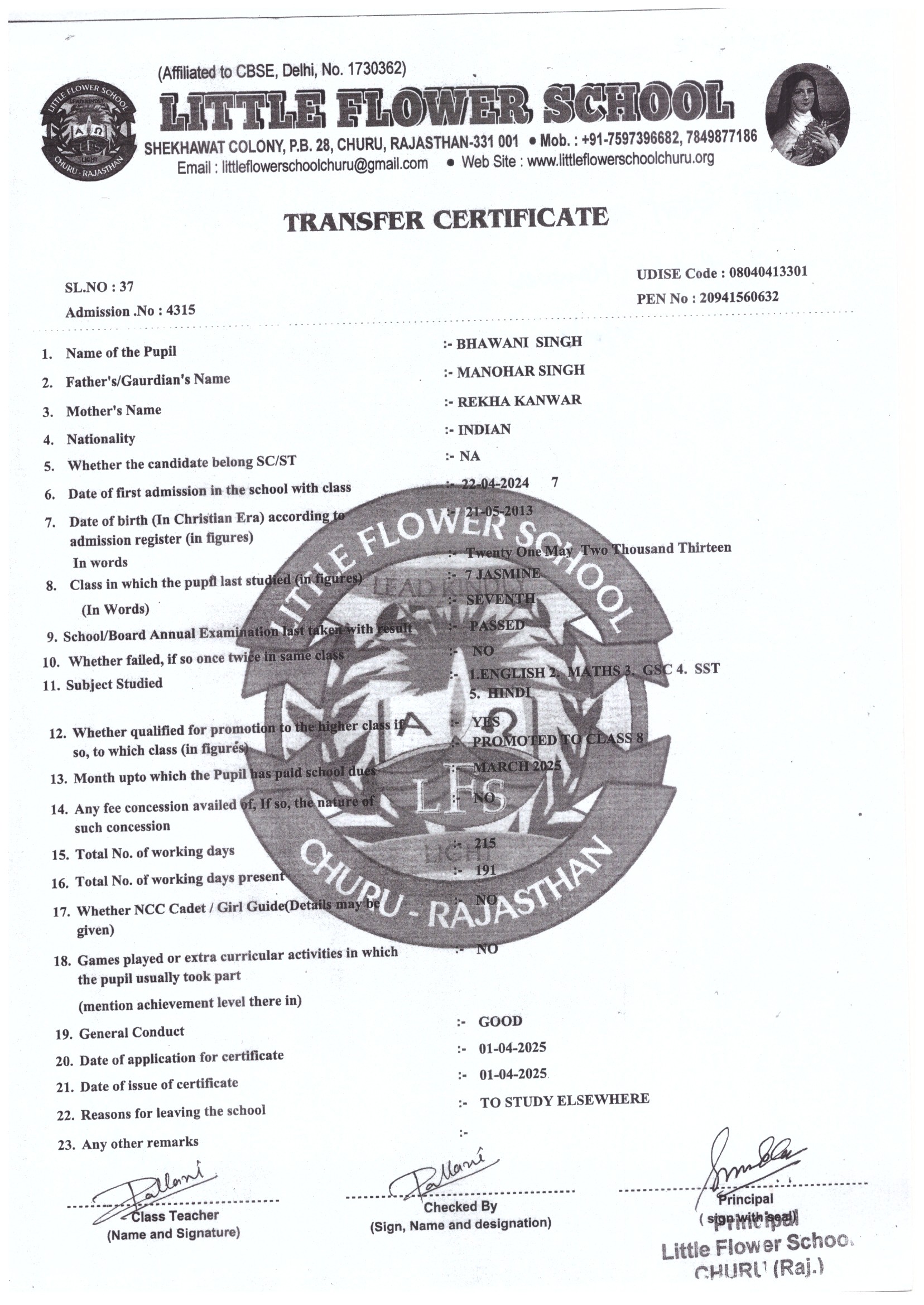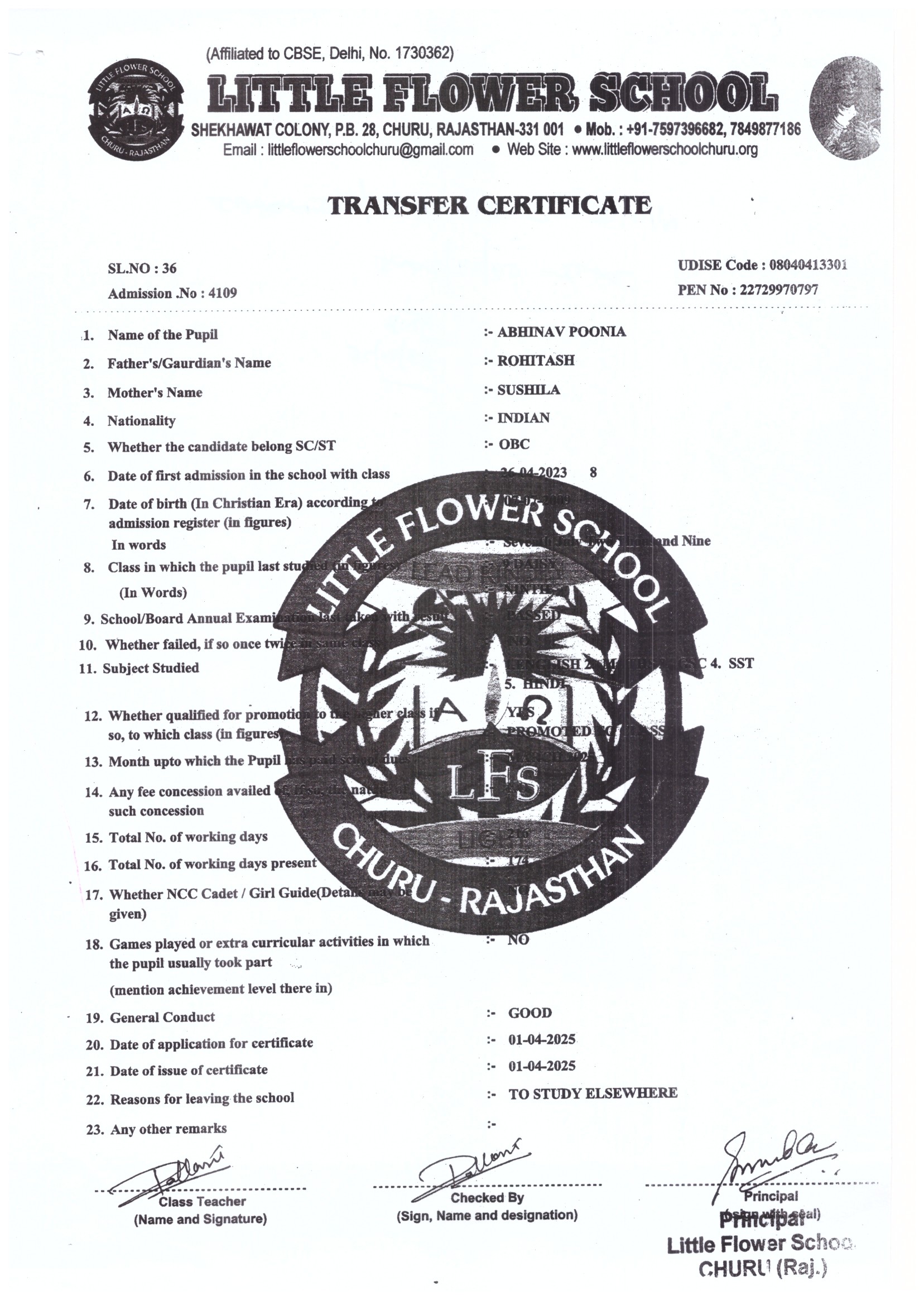Little Flower School is Pioneer in education under CST Punjab, Rajastan.