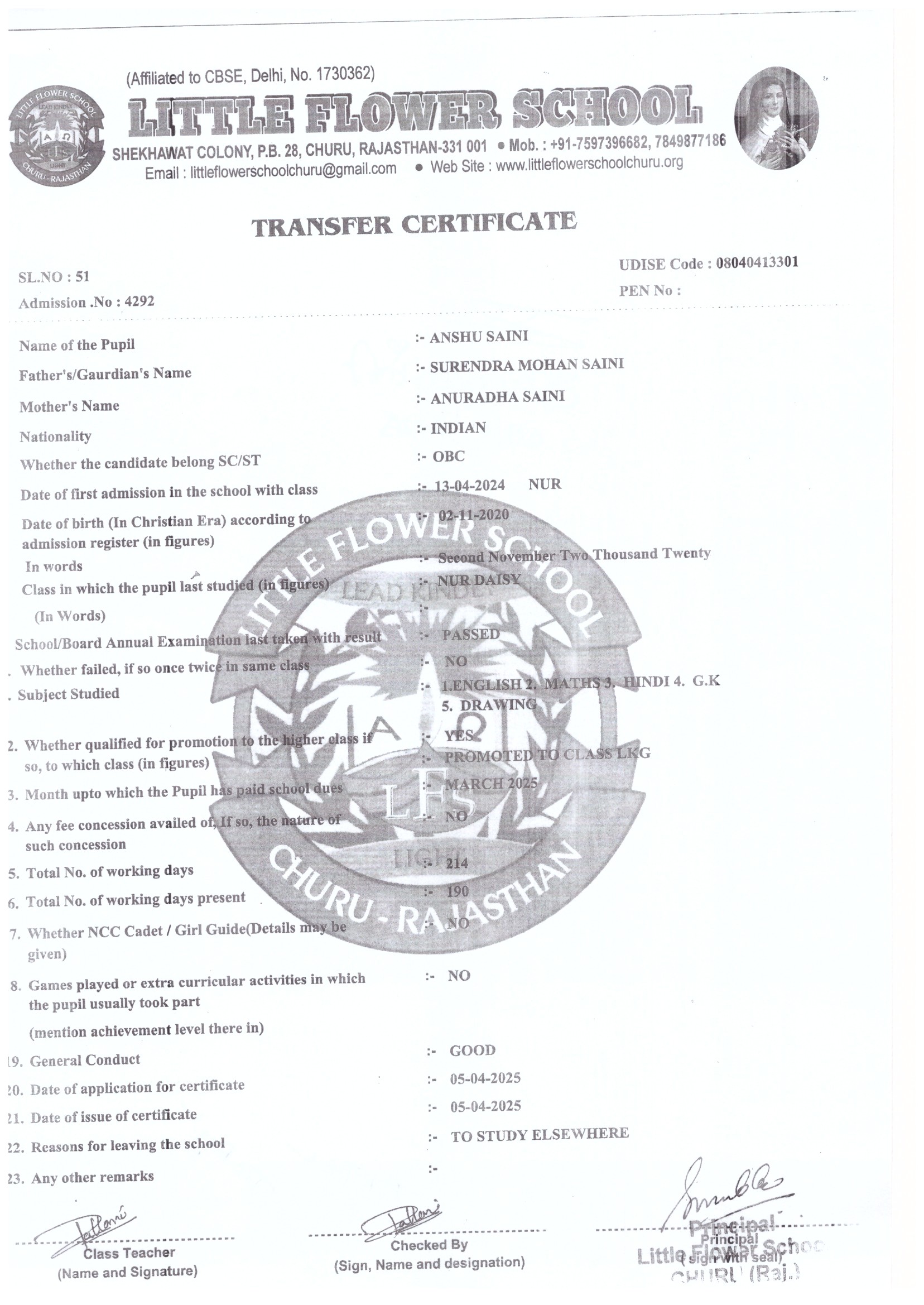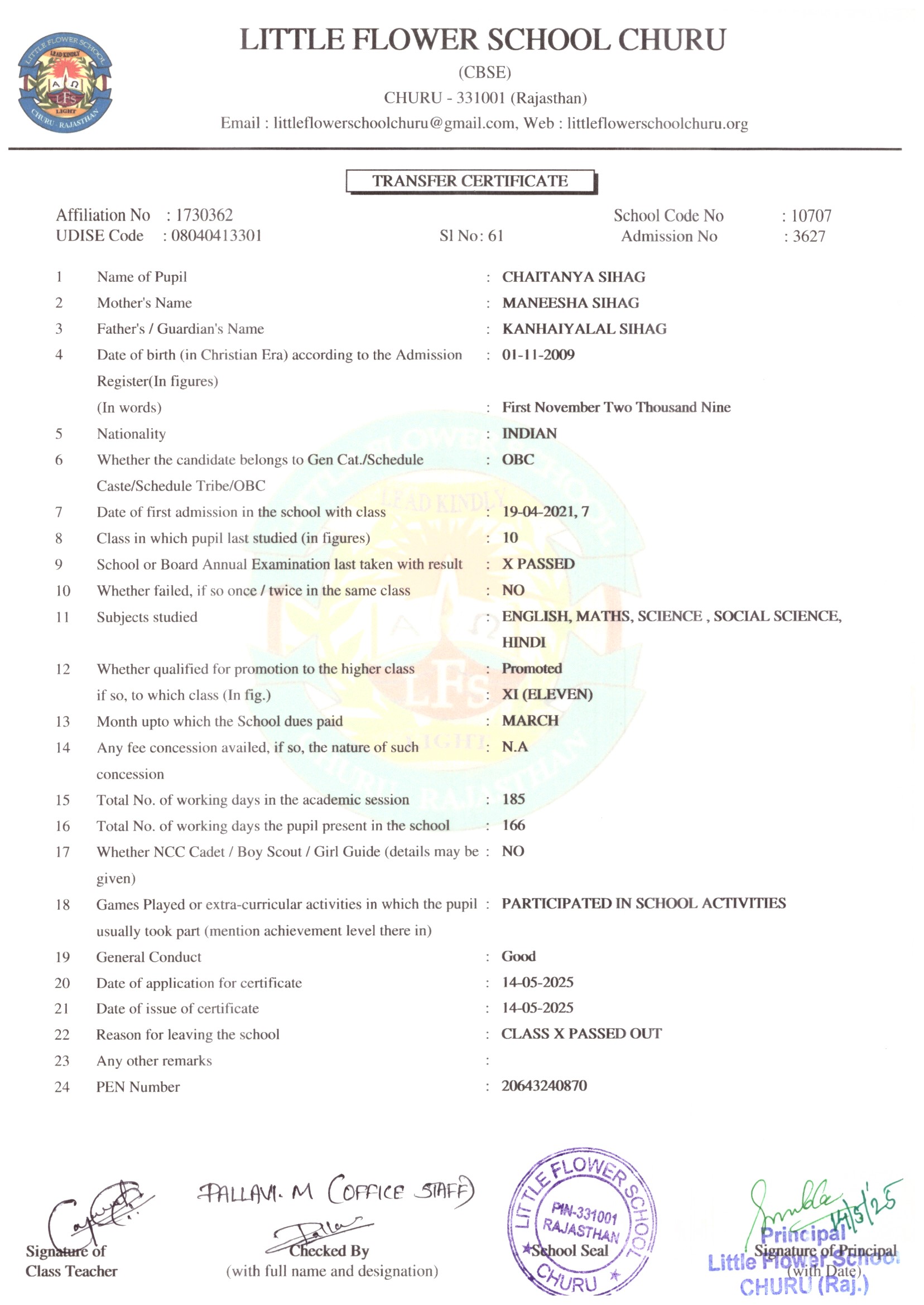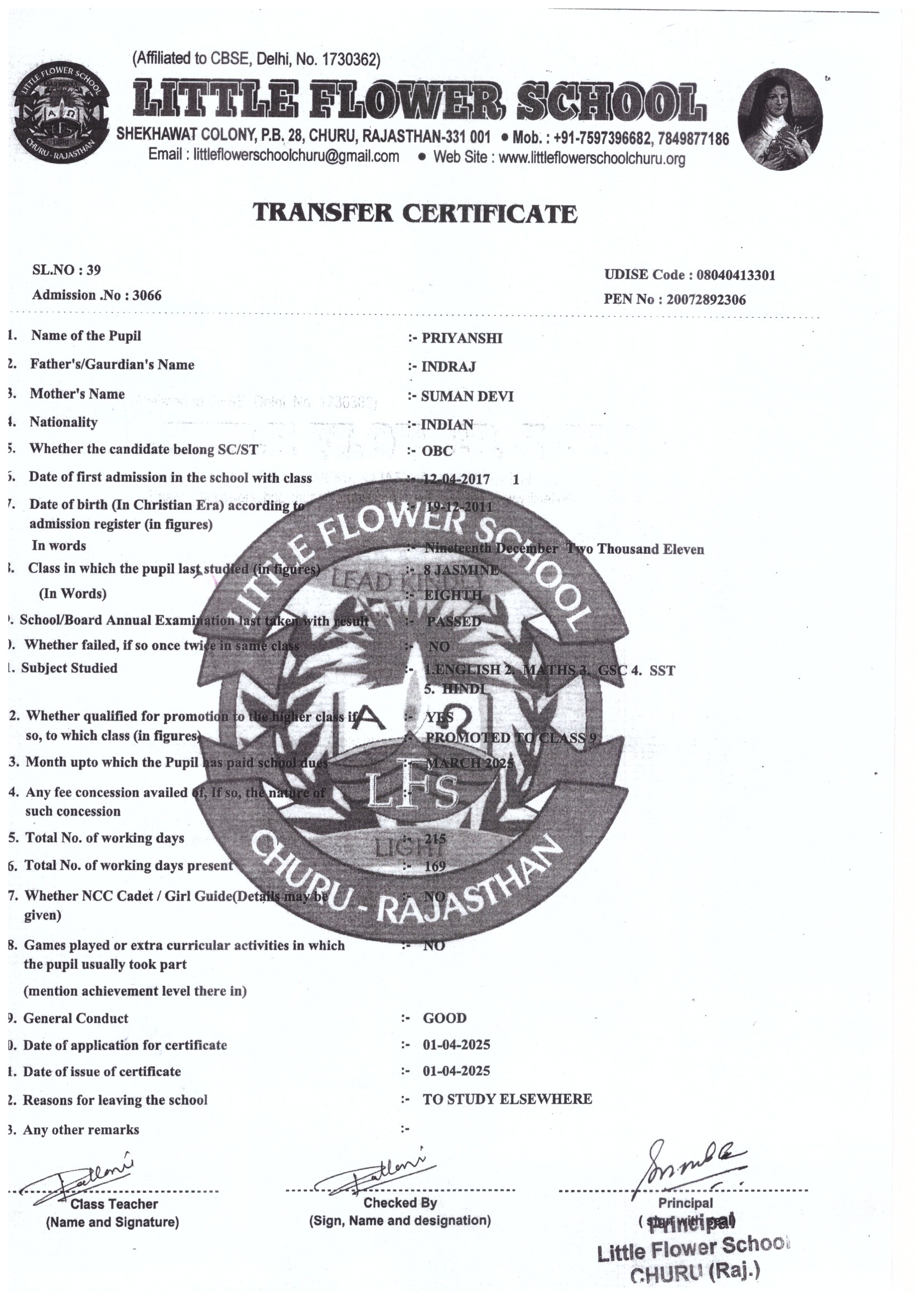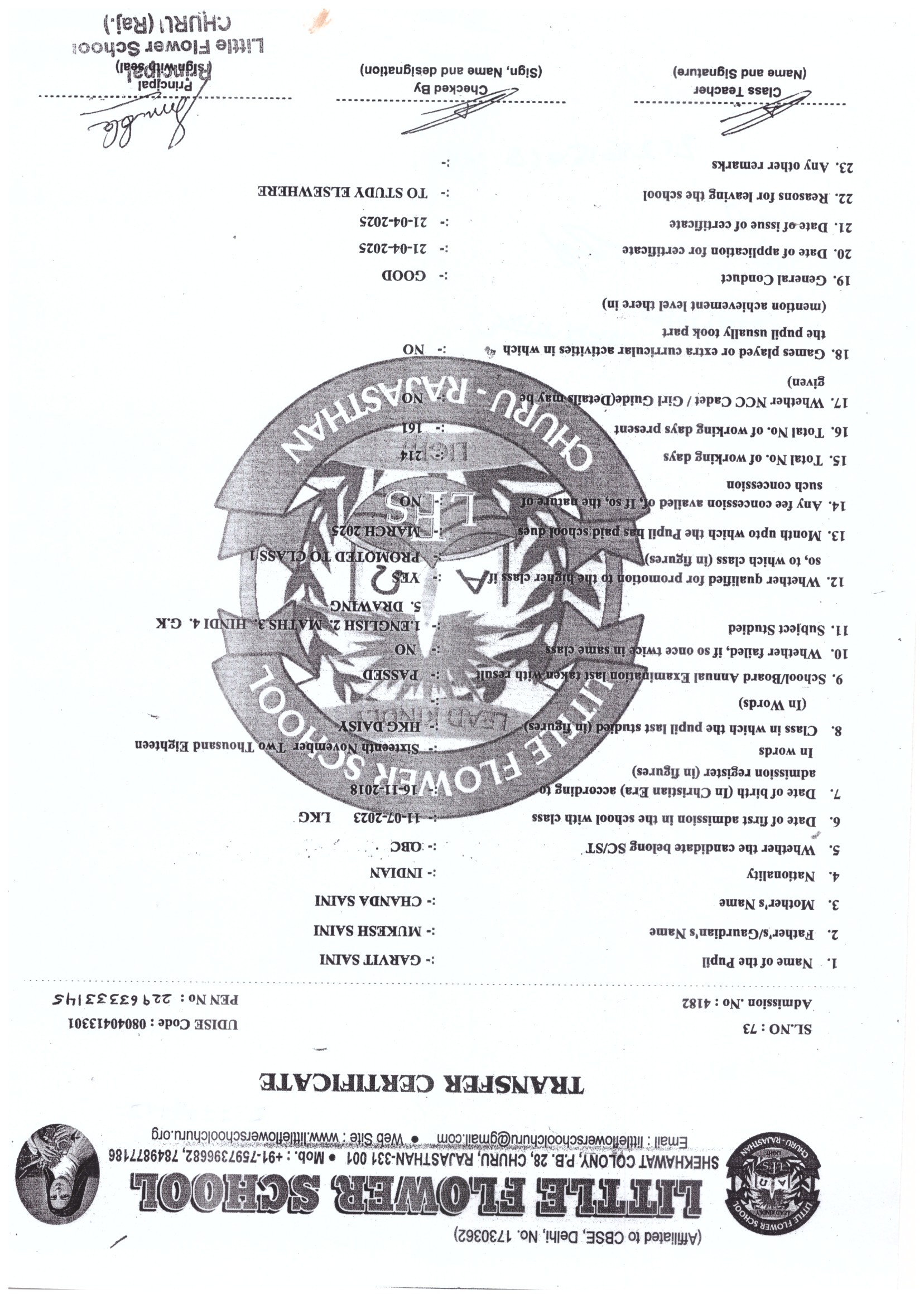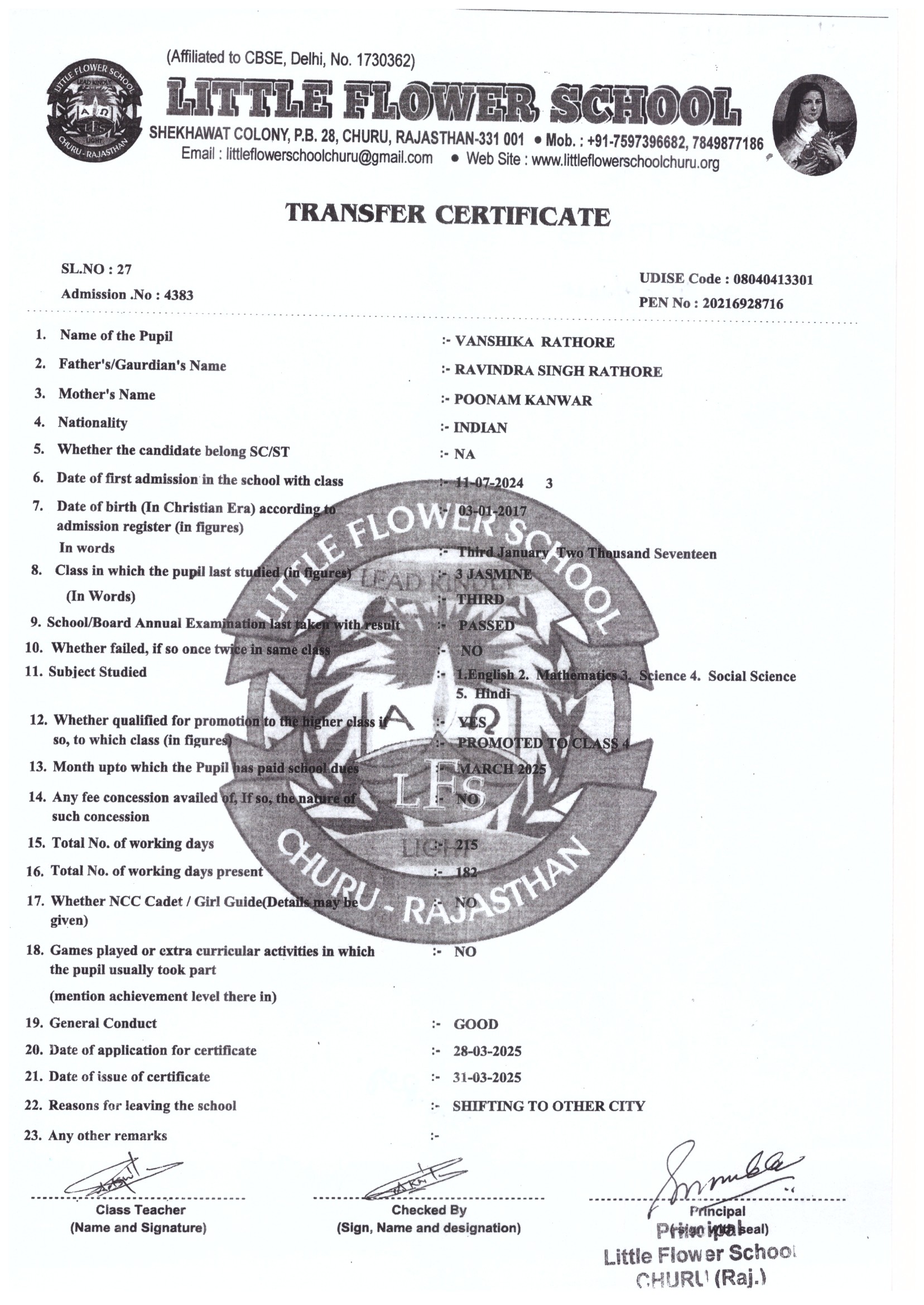 Little Flower School is Pioneer in education under CST Punjab, Rajastan.
