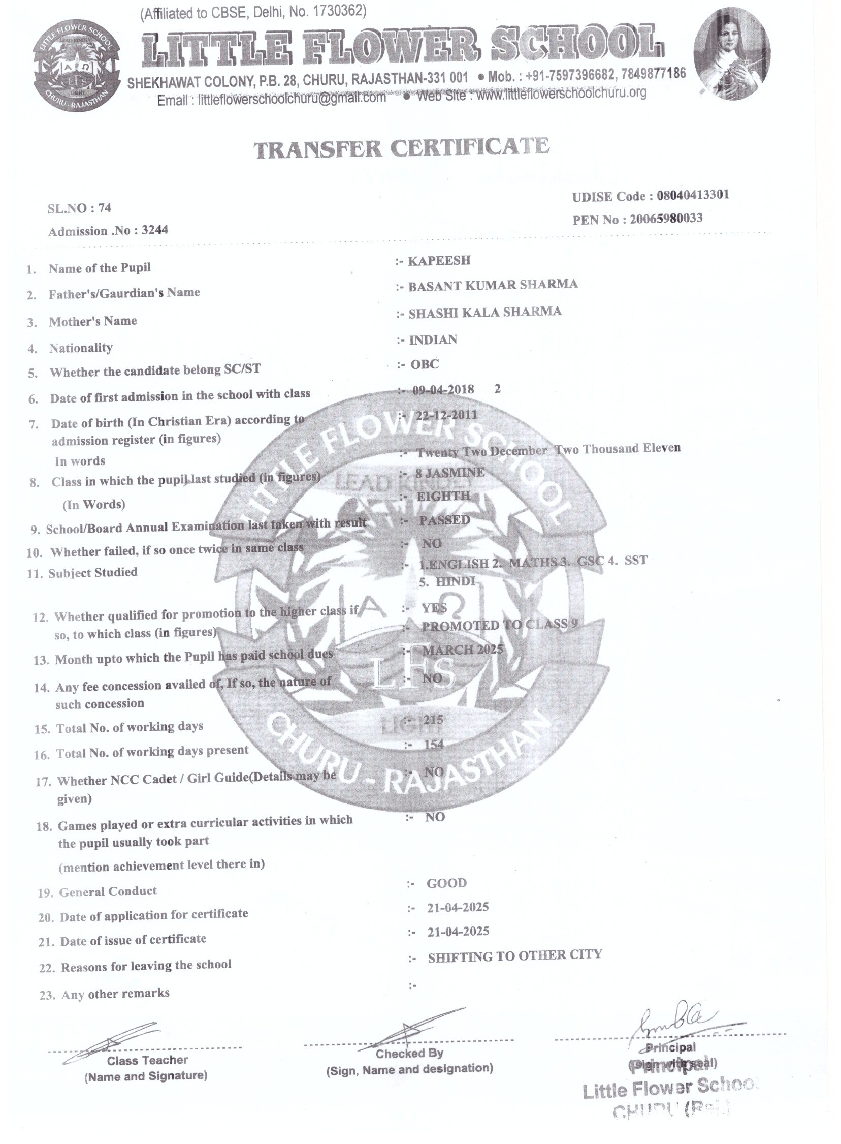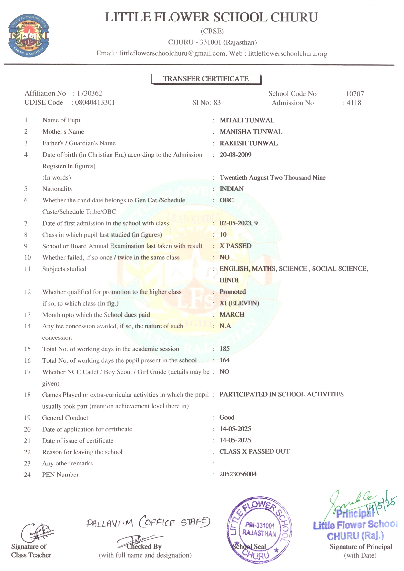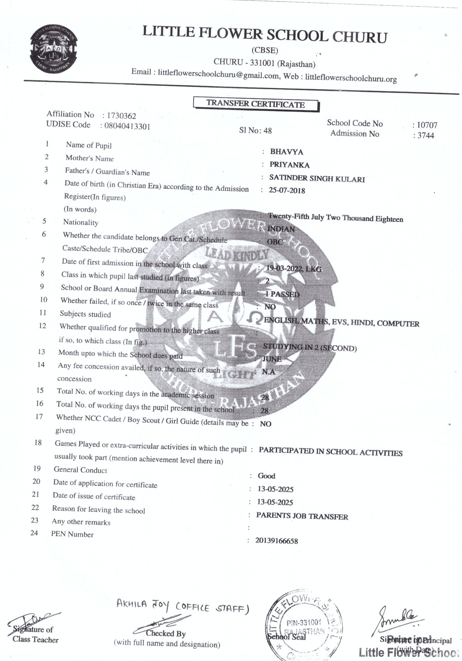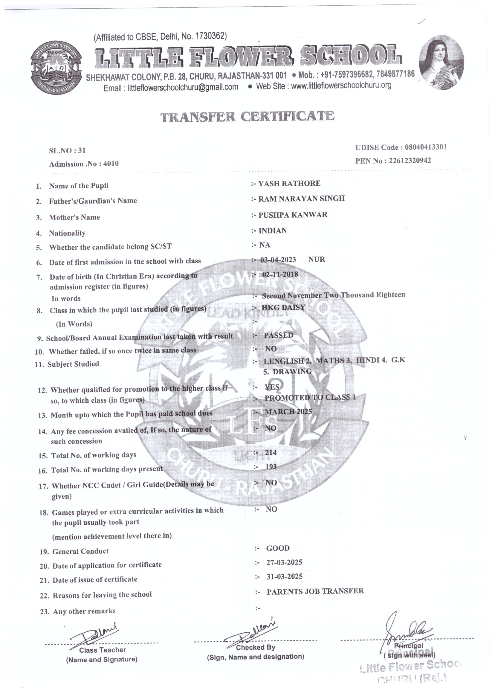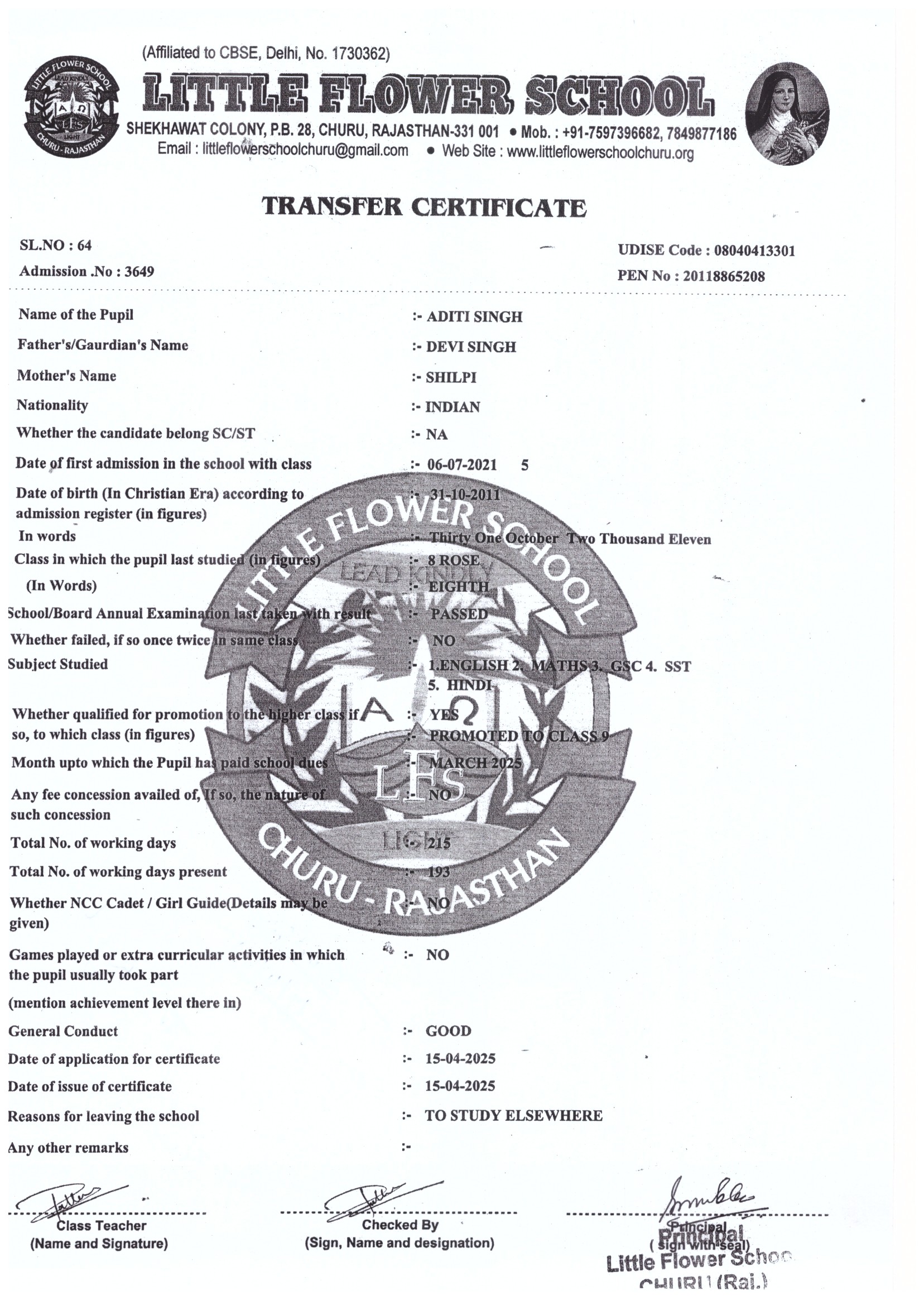 Little Flower School is Pioneer in education under CST Punjab, Rajastan.