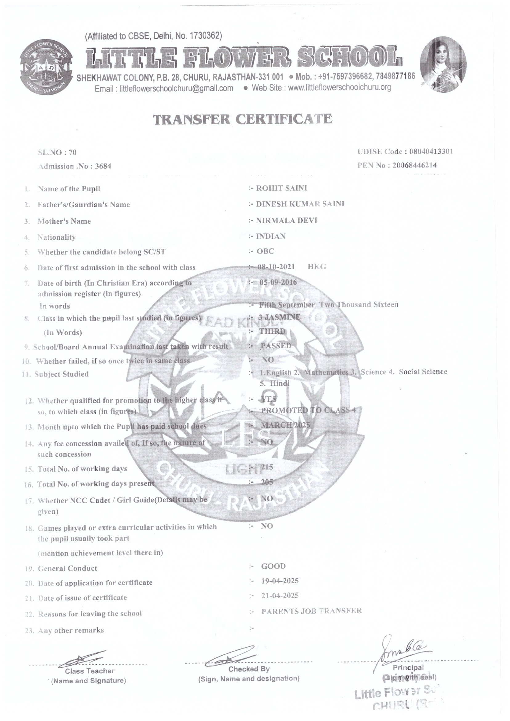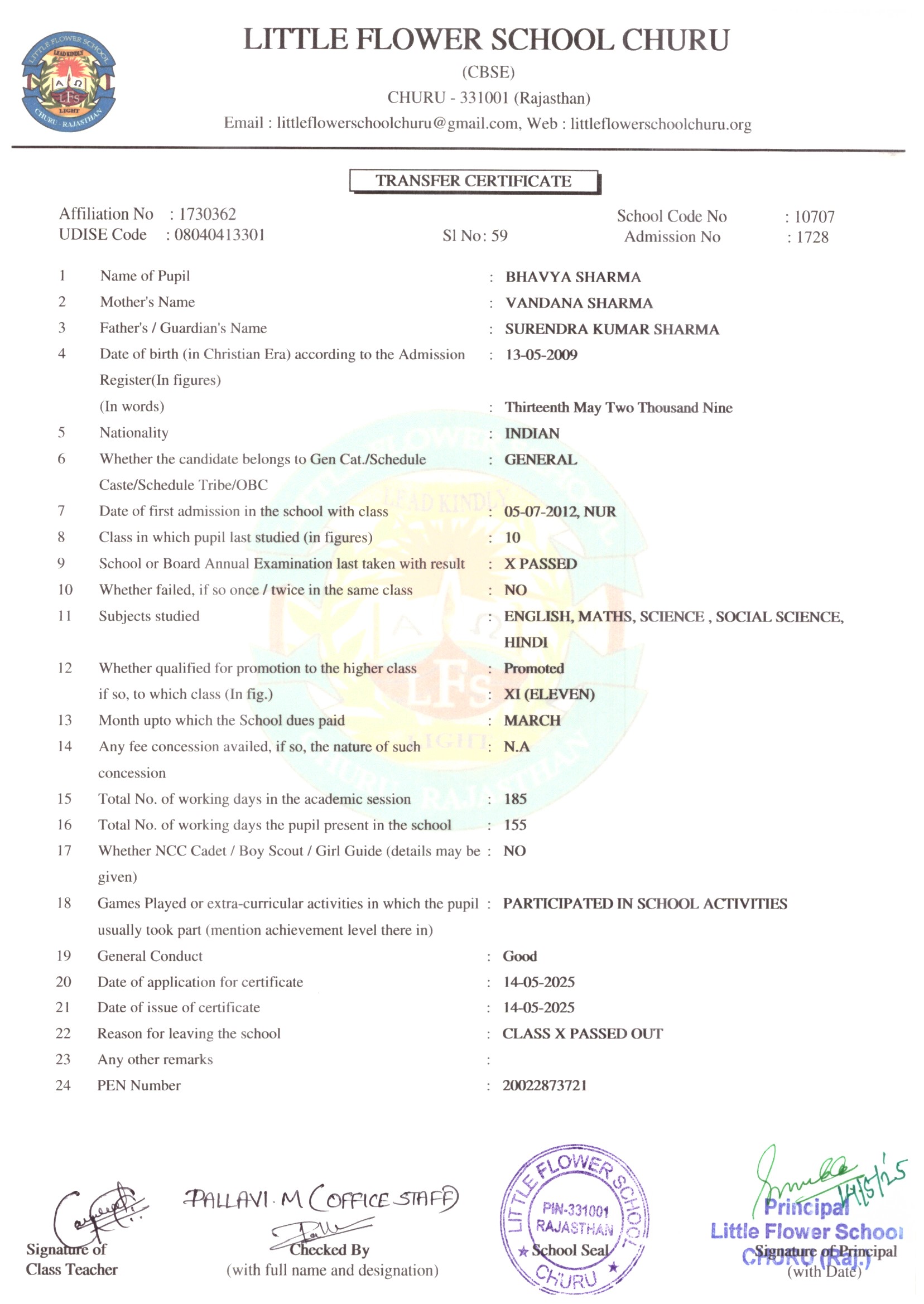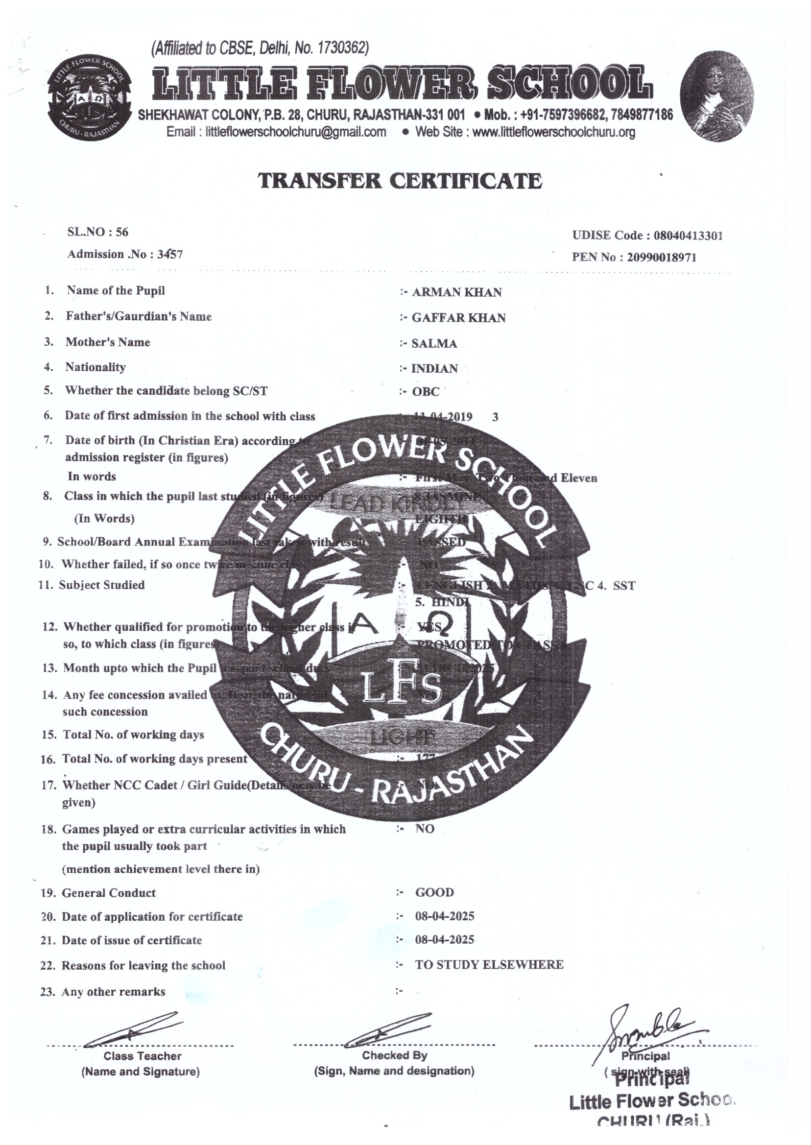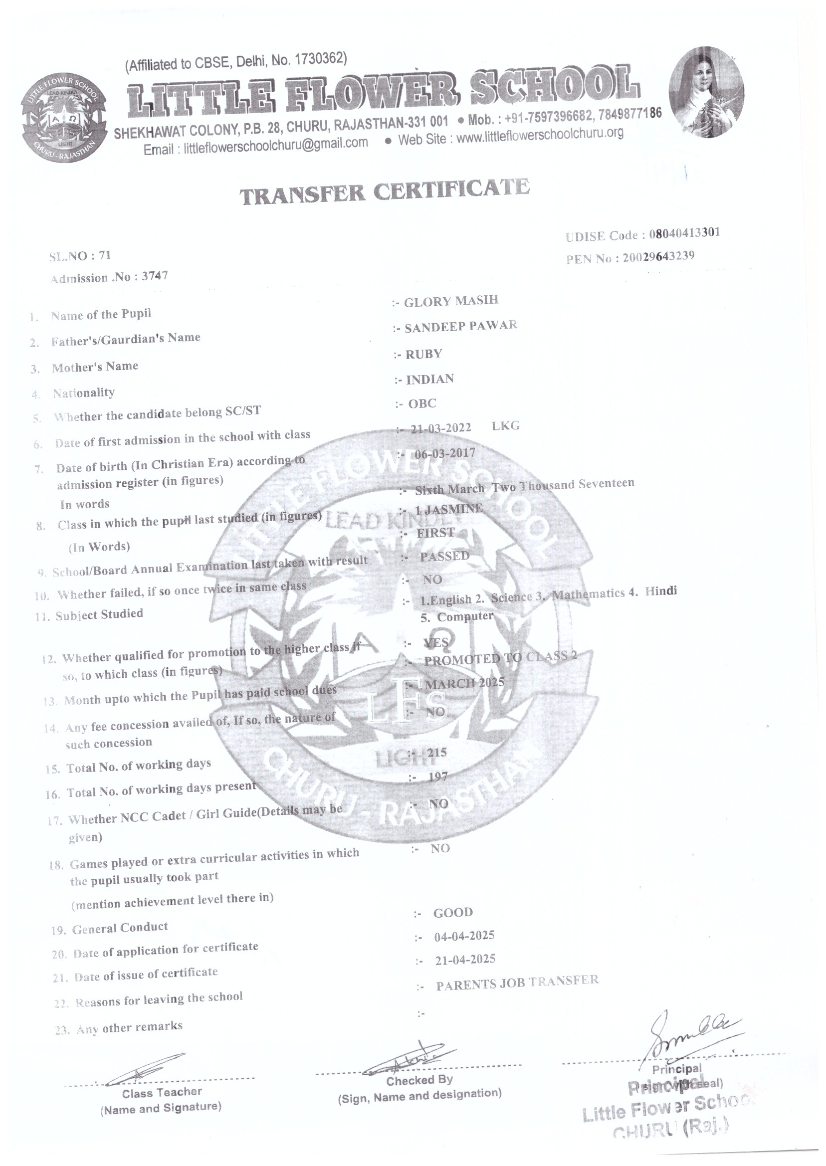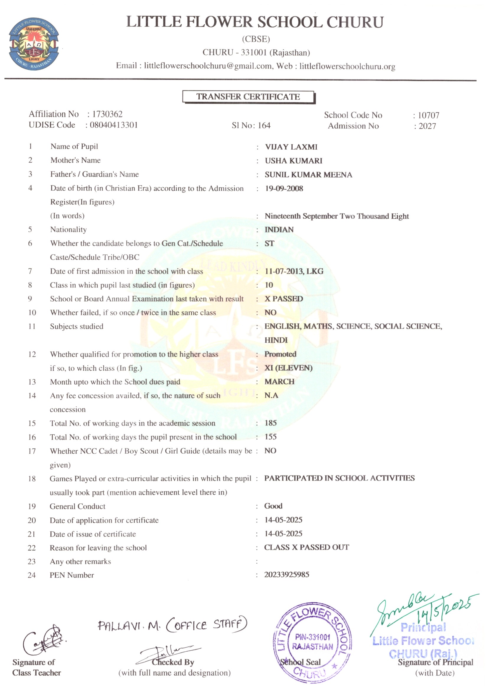 Little Flower School is Pioneer in education under CST Punjab, Rajastan.