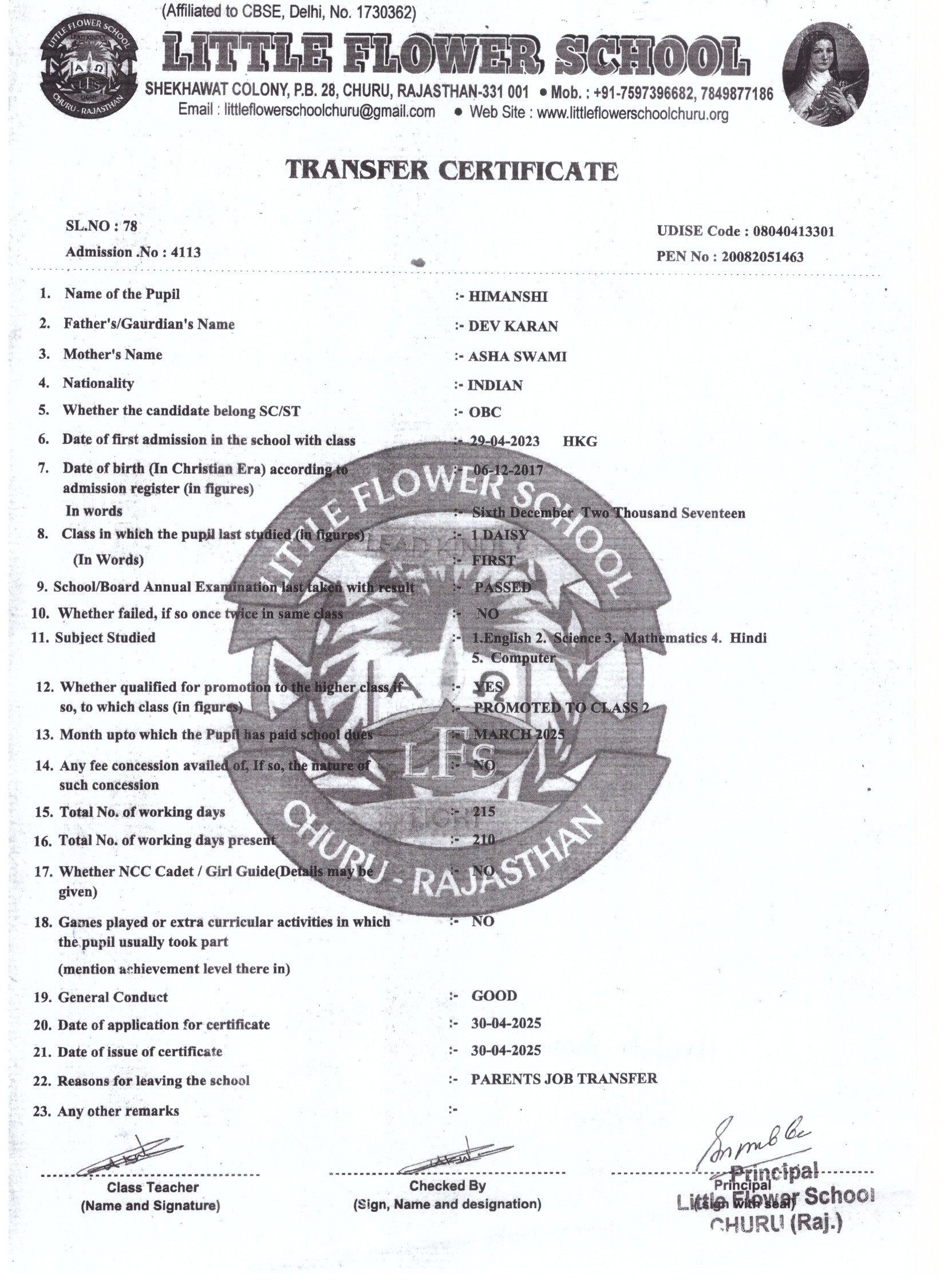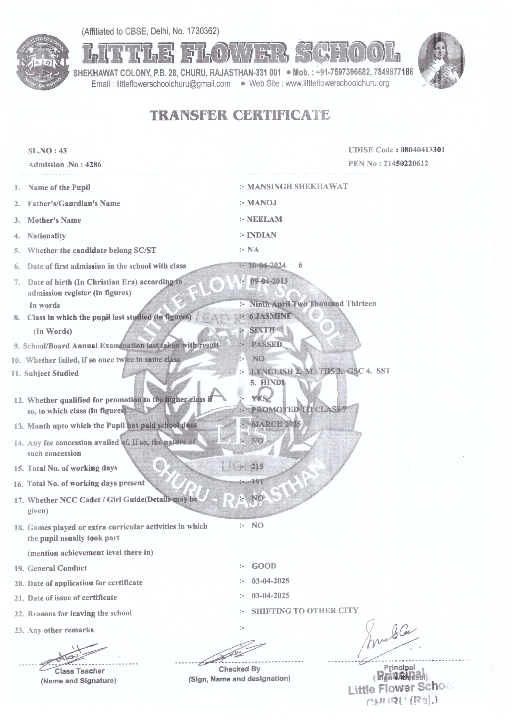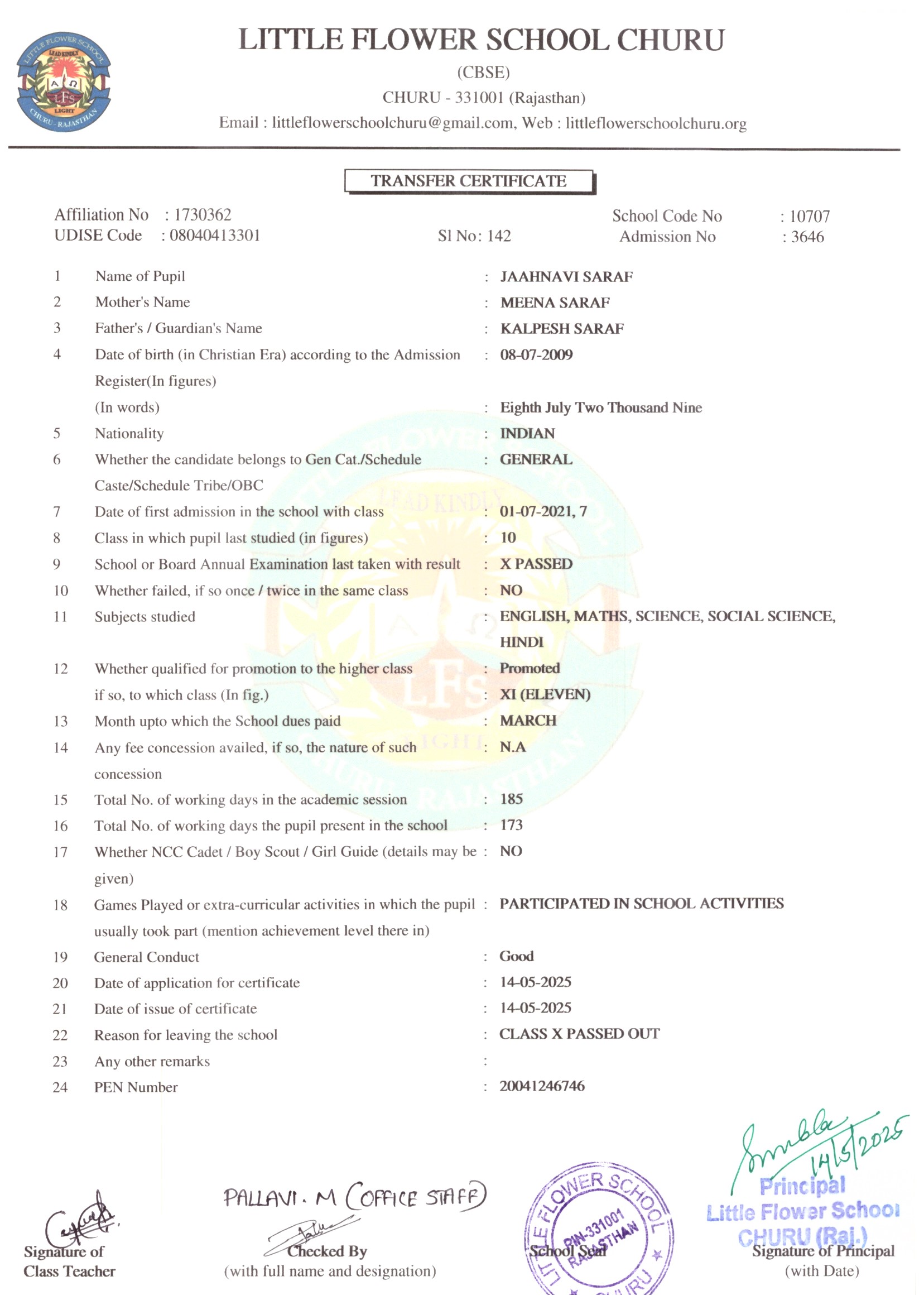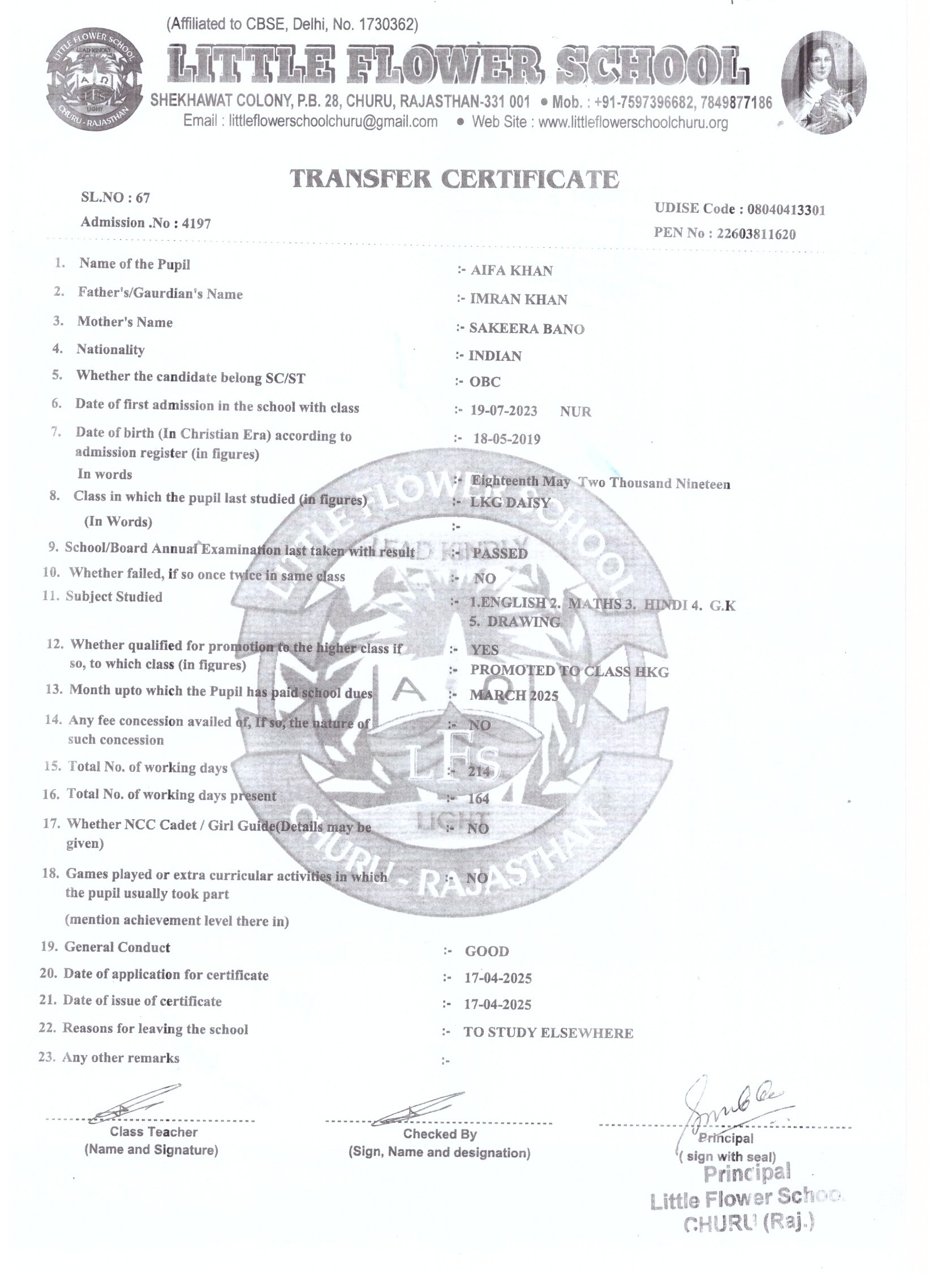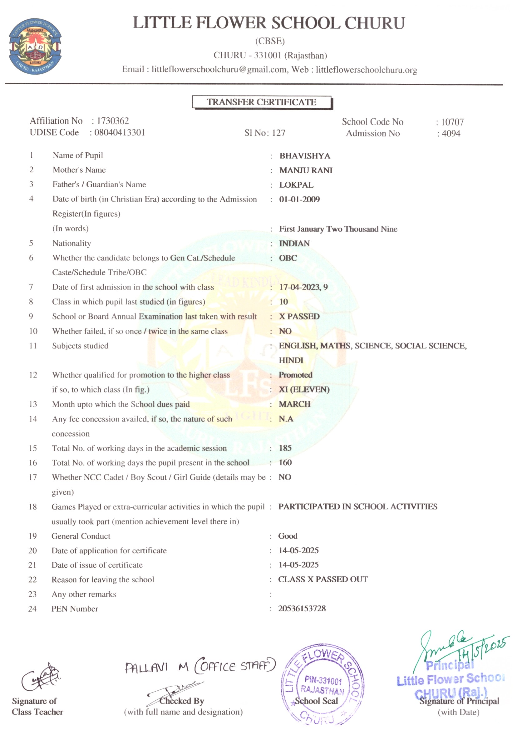 Little Flower School is Pioneer in education under CST Punjab, Rajastan.