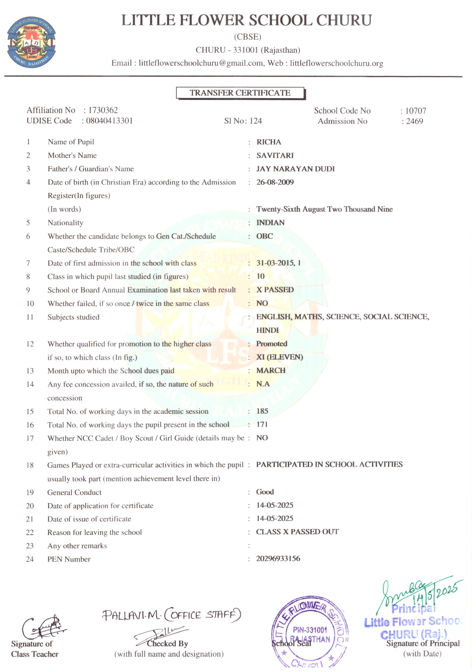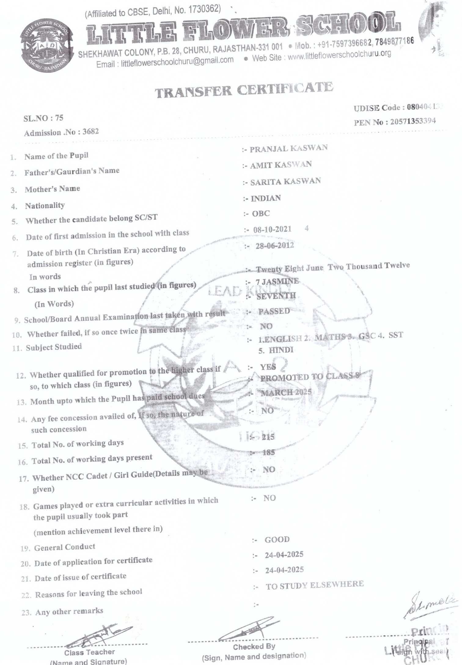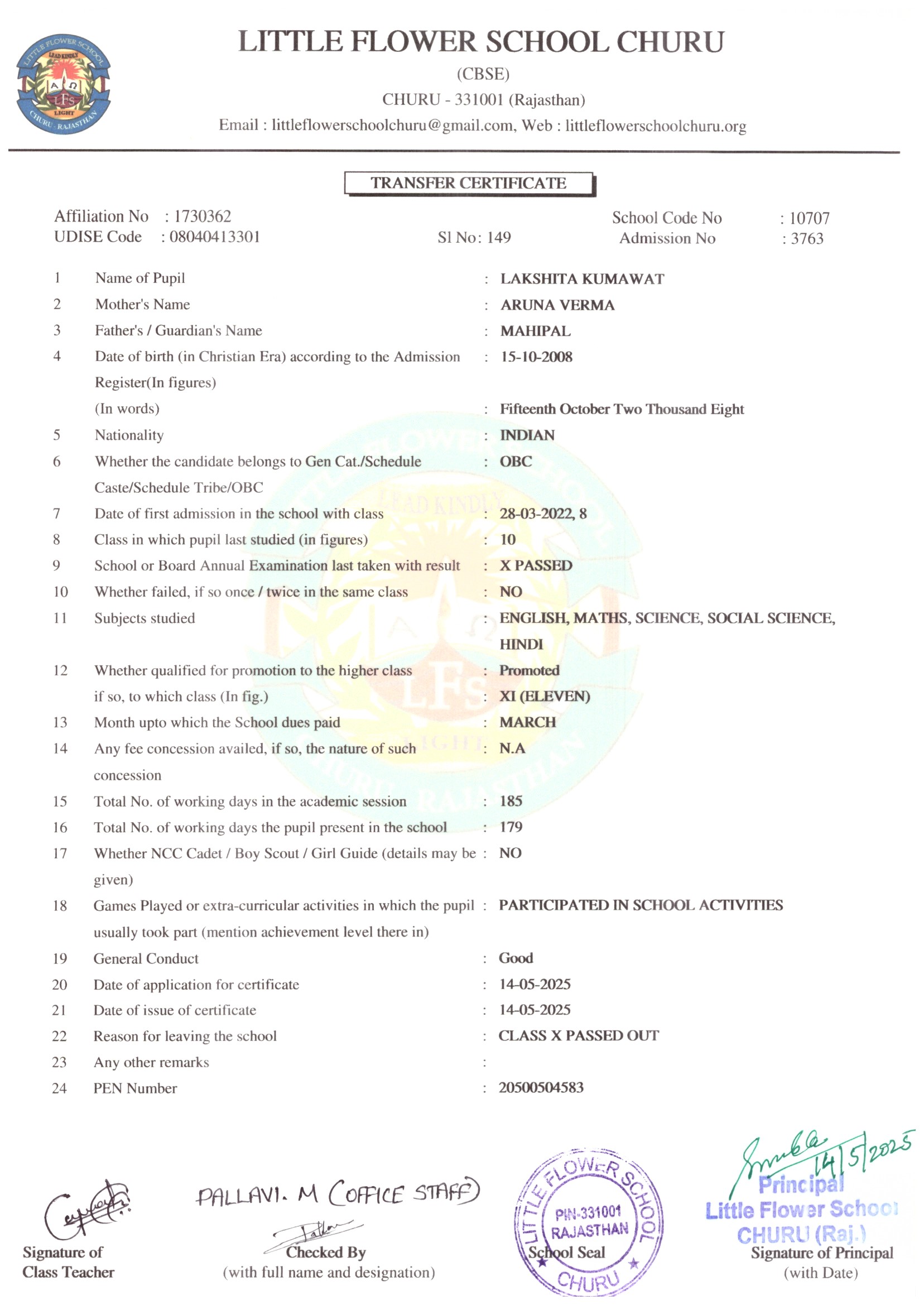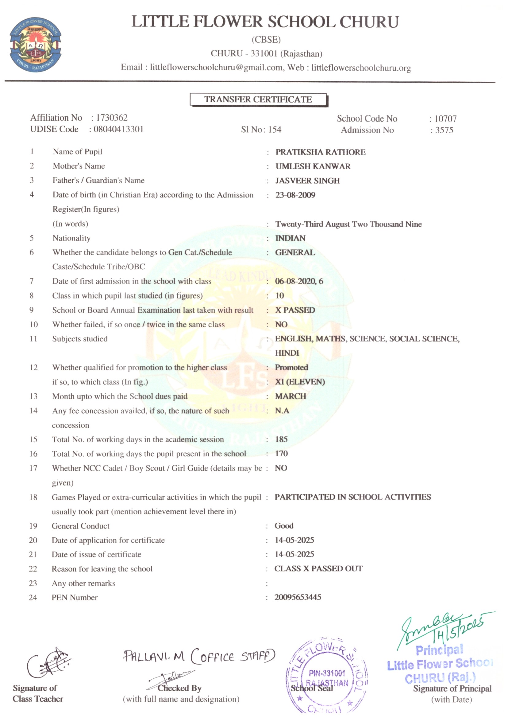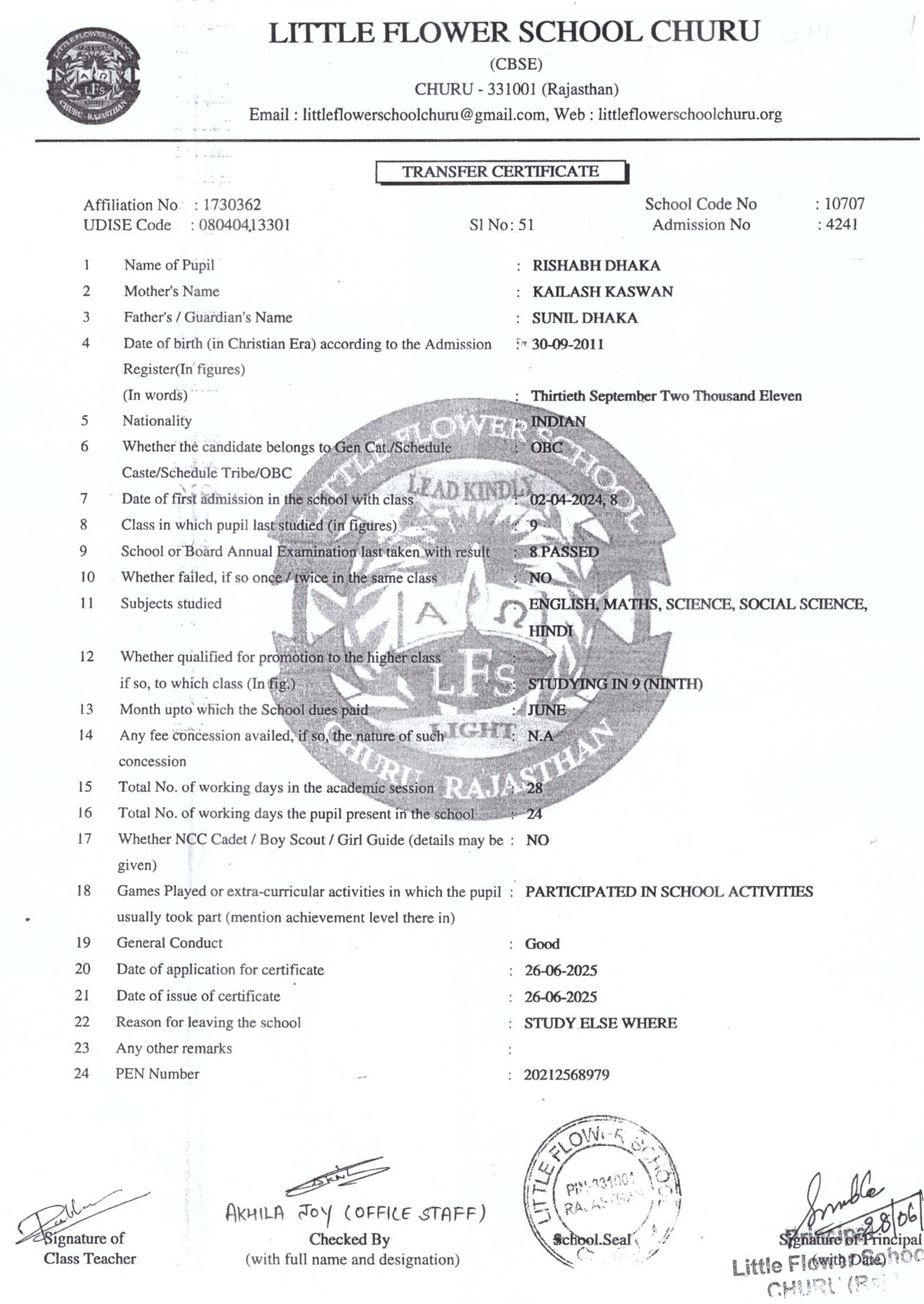 Little Flower School is Pioneer in education under CST Punjab, Rajastan.