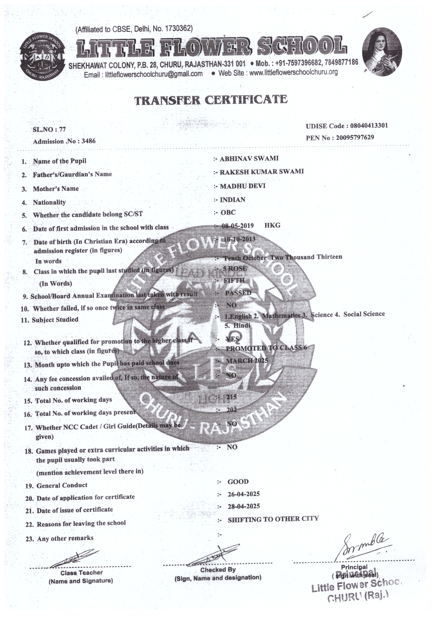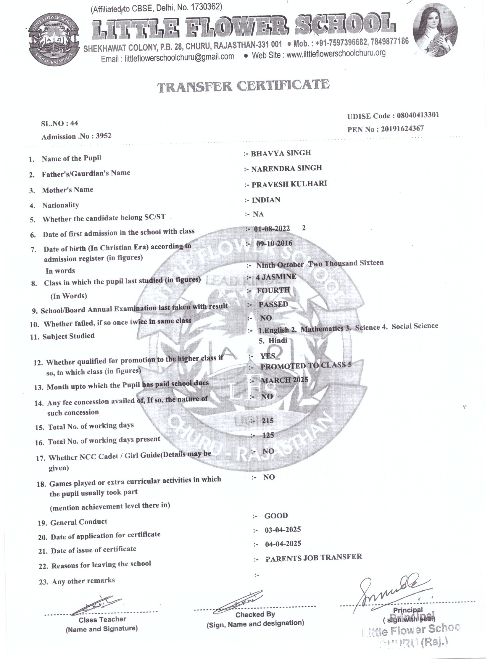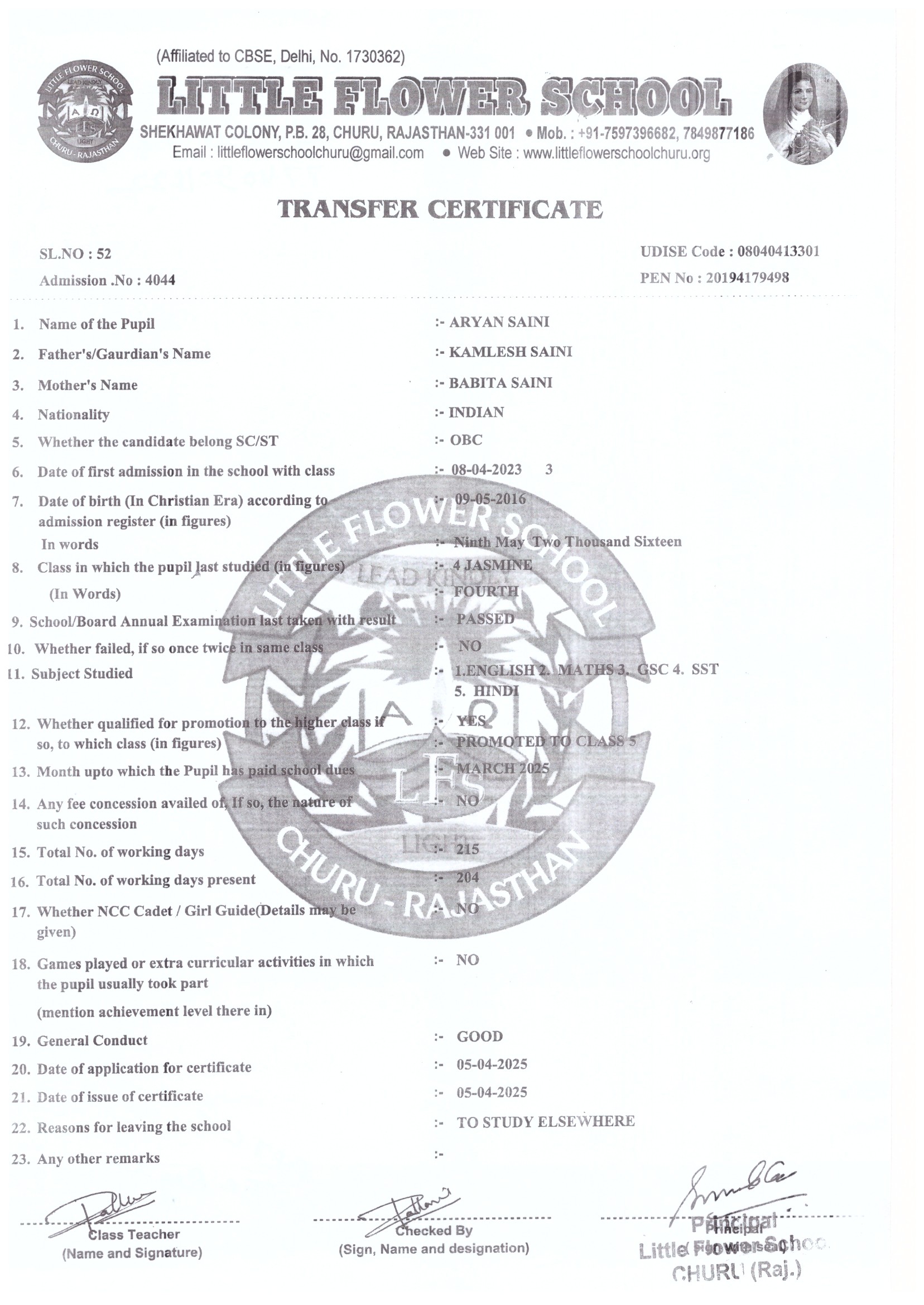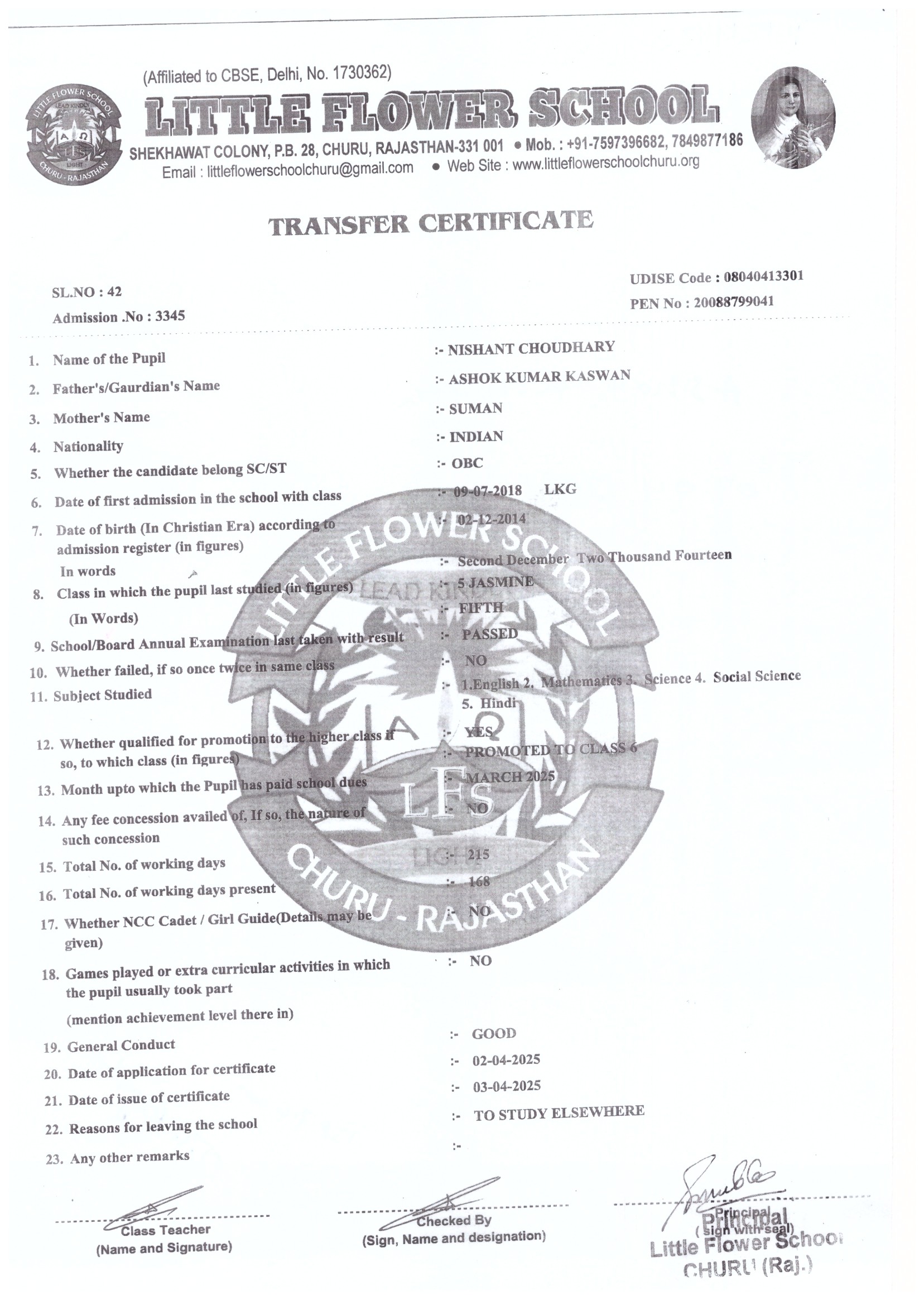 Little Flower School is Pioneer in education under CST Punjab, Rajastan.