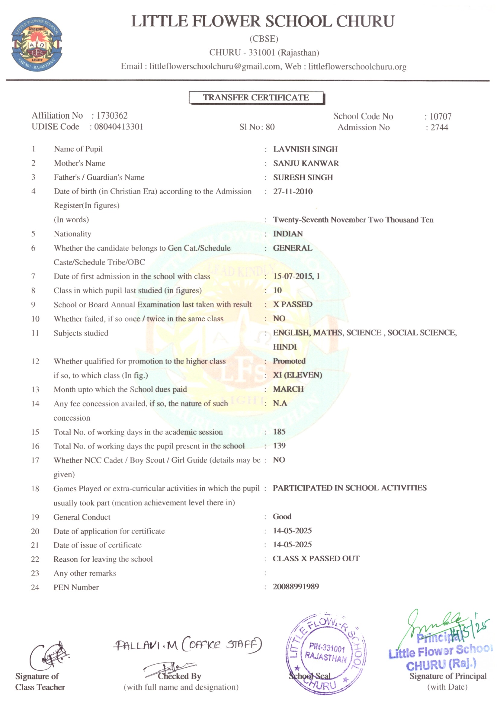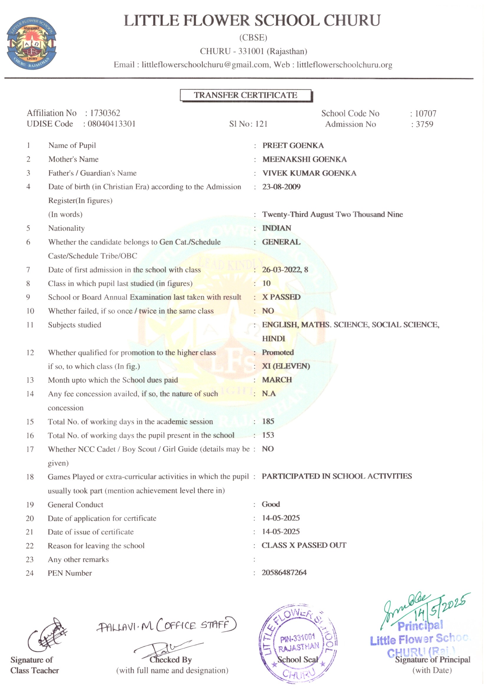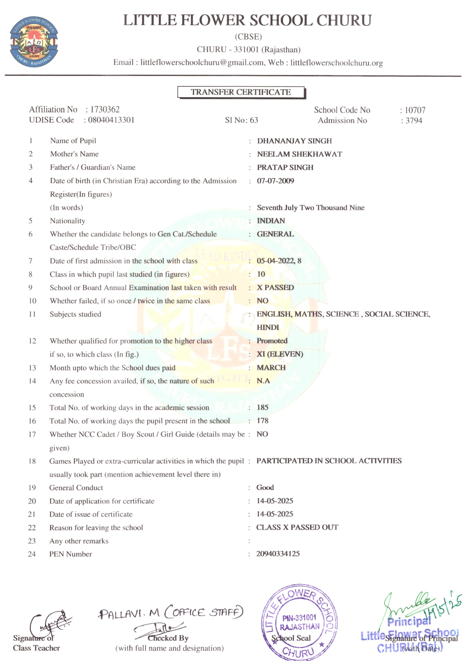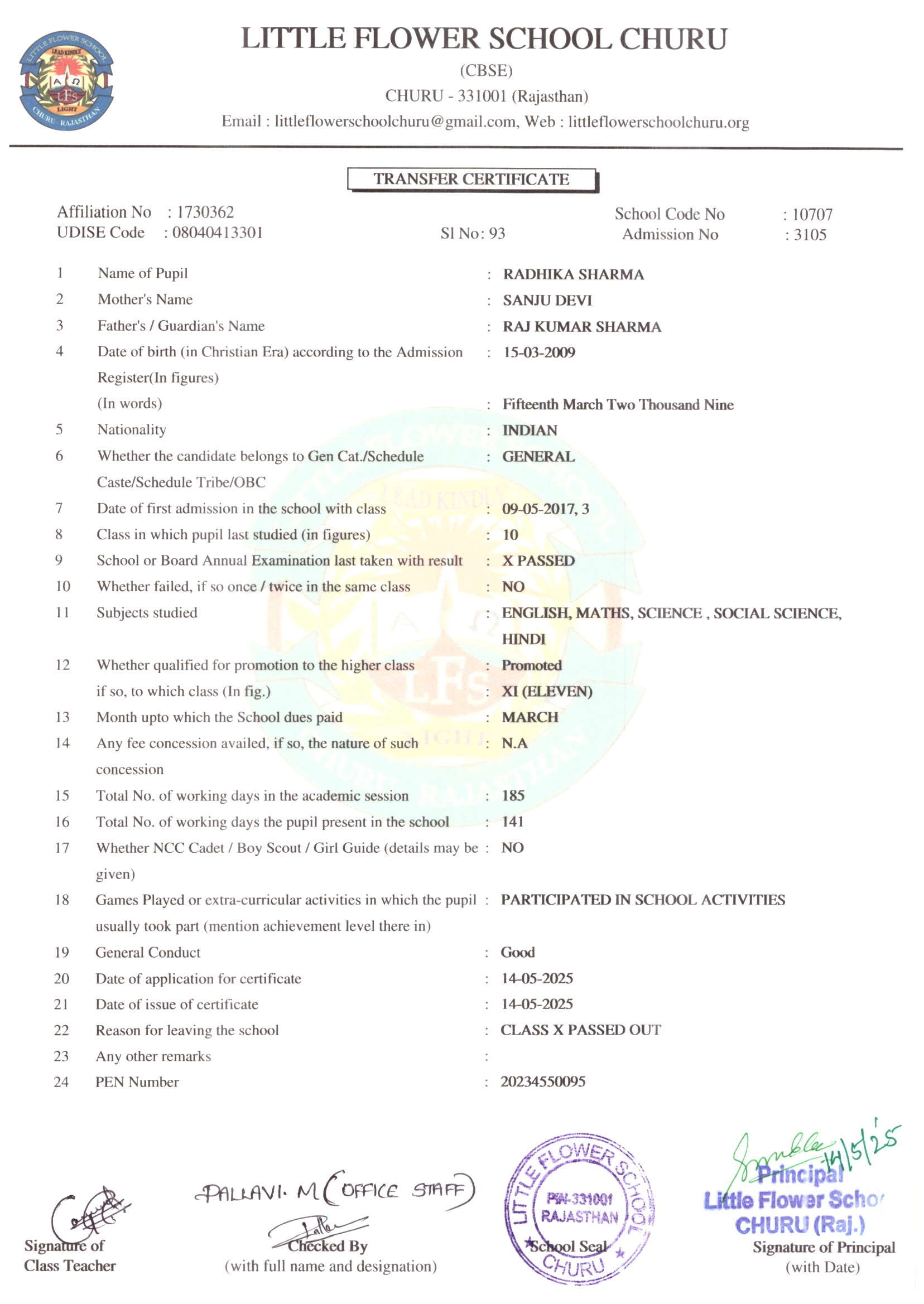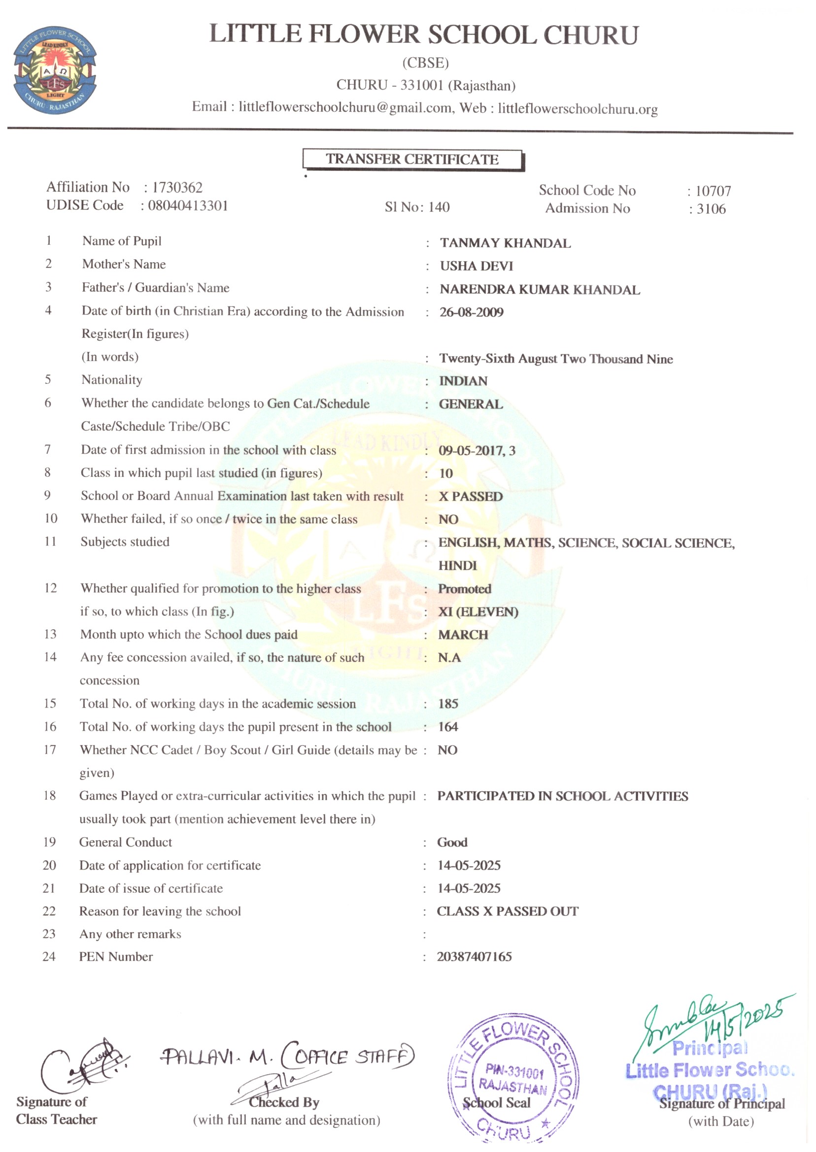 Little Flower School is Pioneer in education under CST Punjab, Rajastan.