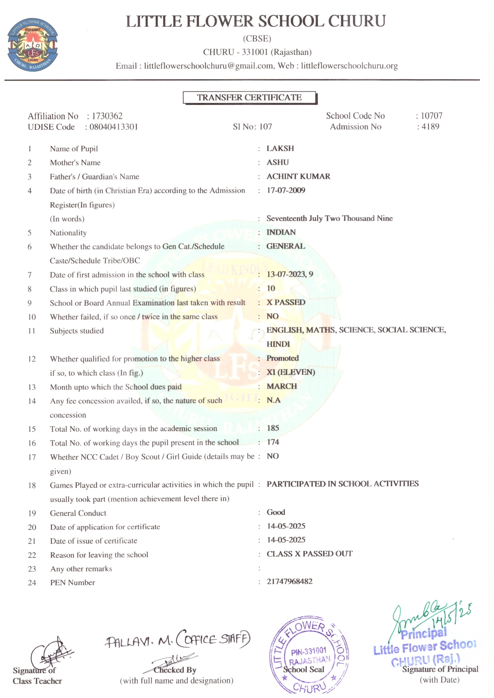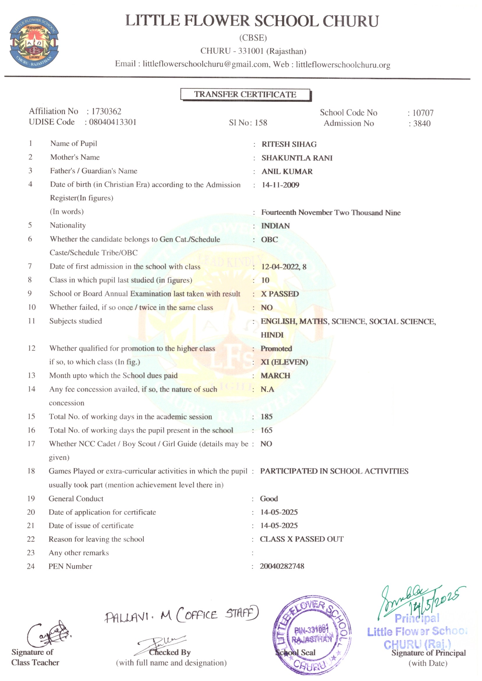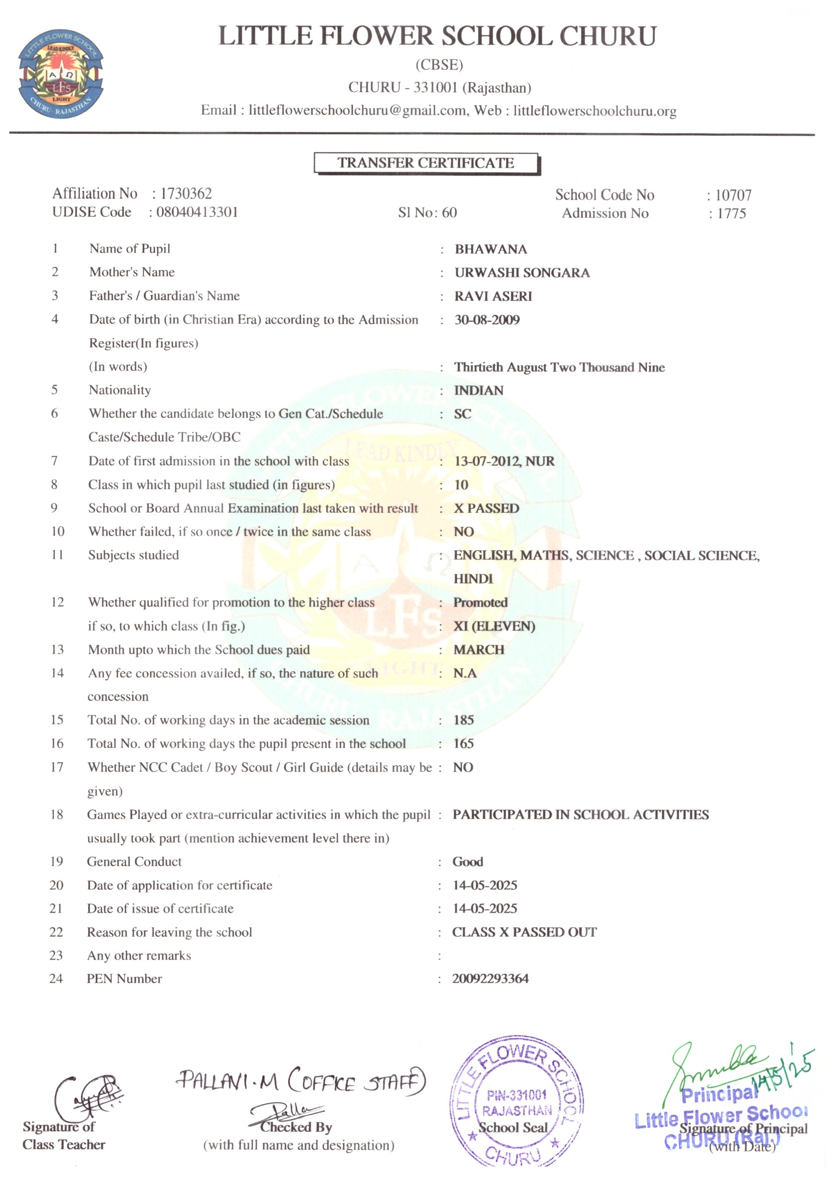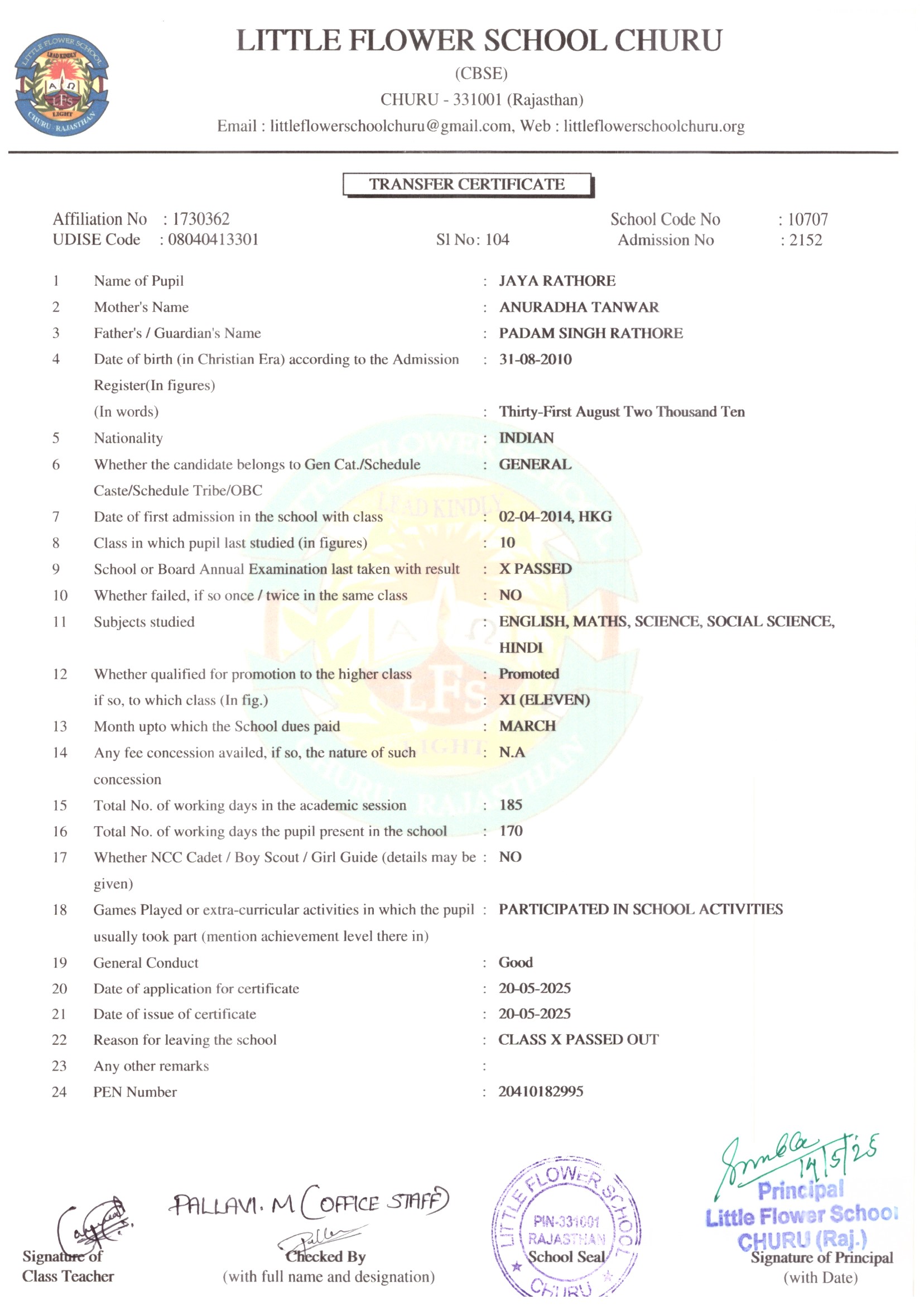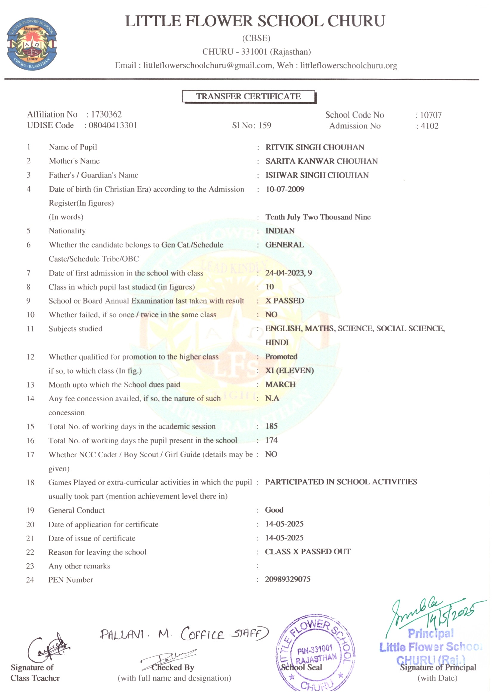 Little Flower School is Pioneer in education under CST Punjab, Rajastan.