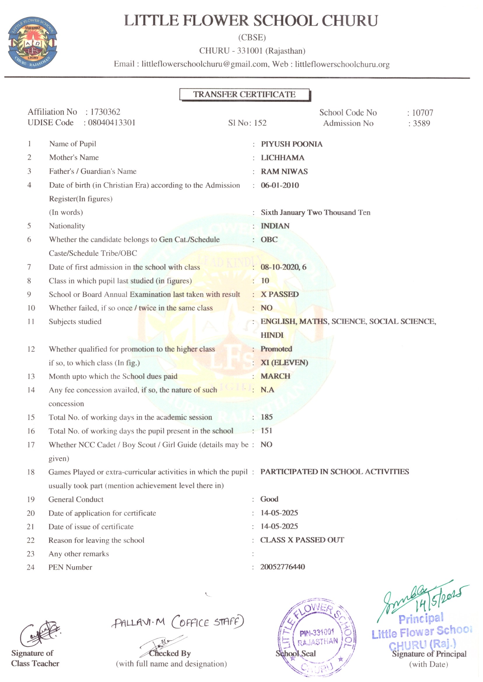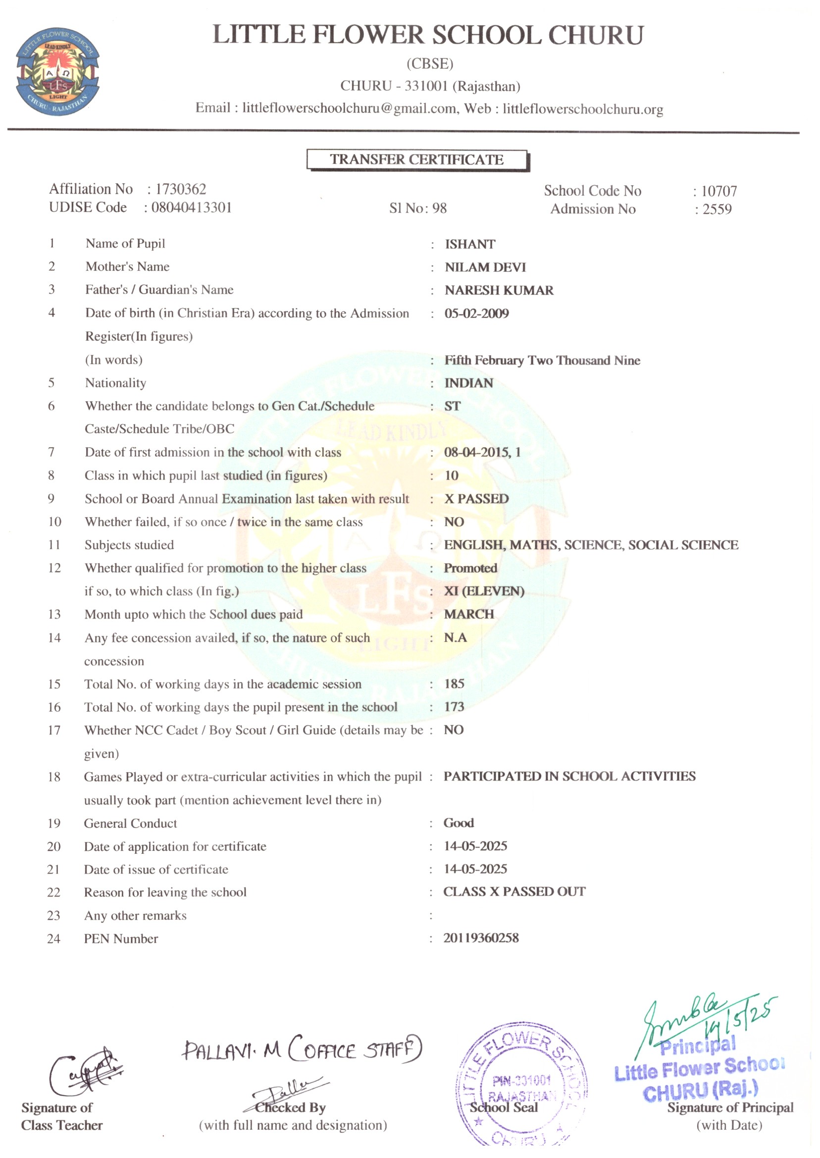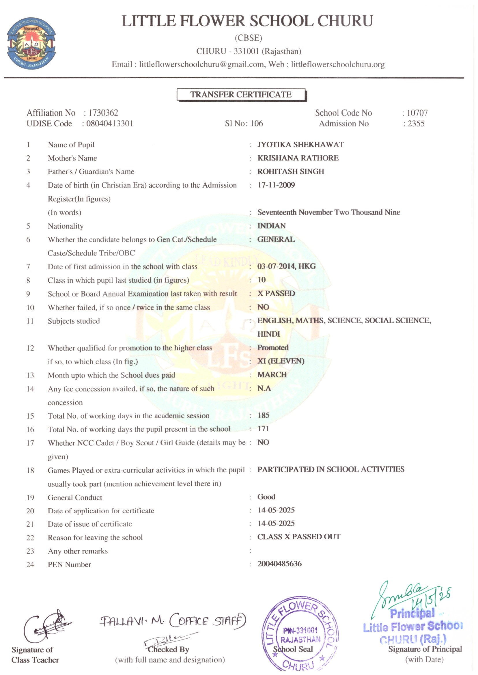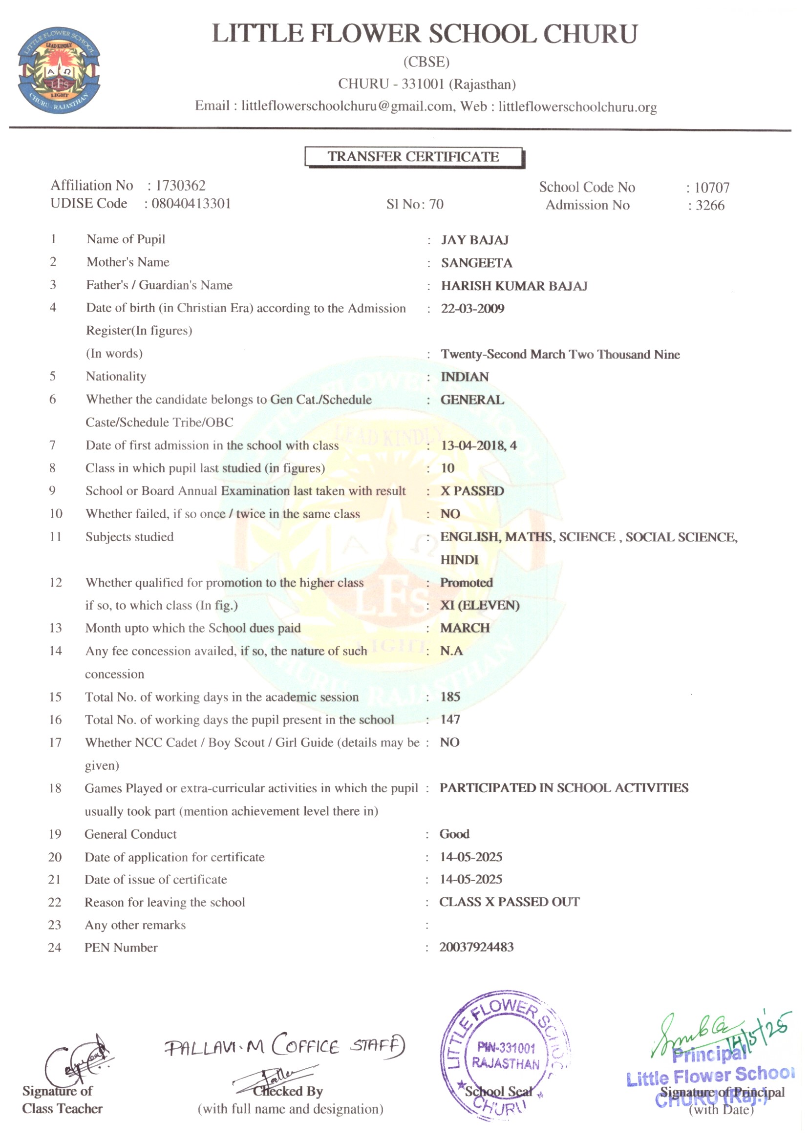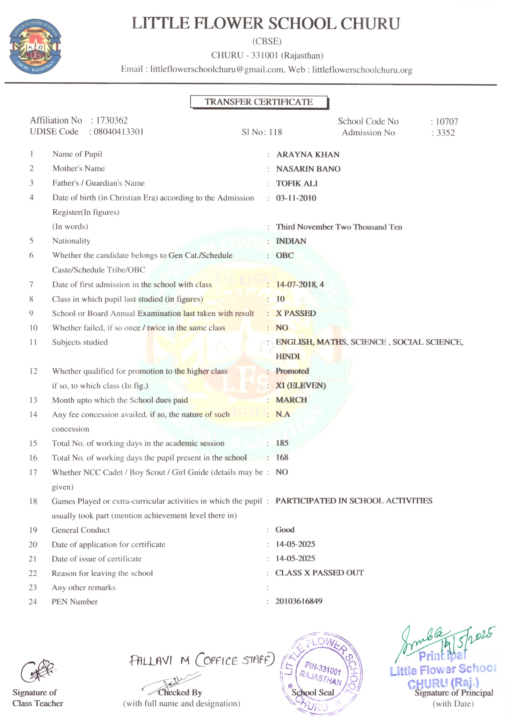 Little Flower School is Pioneer in education under CST Punjab, Rajastan.