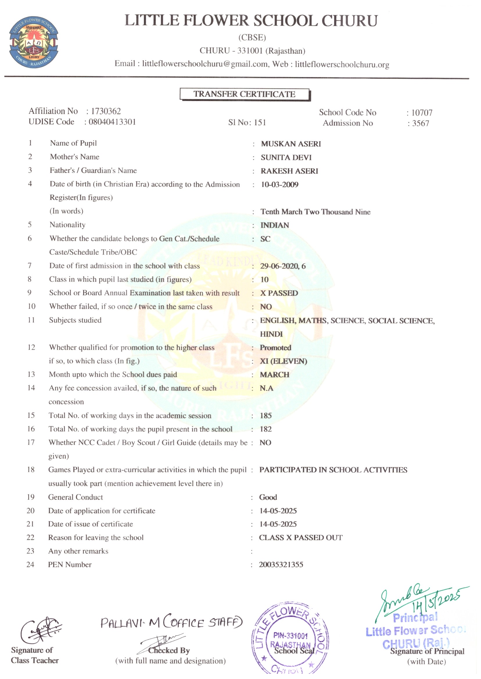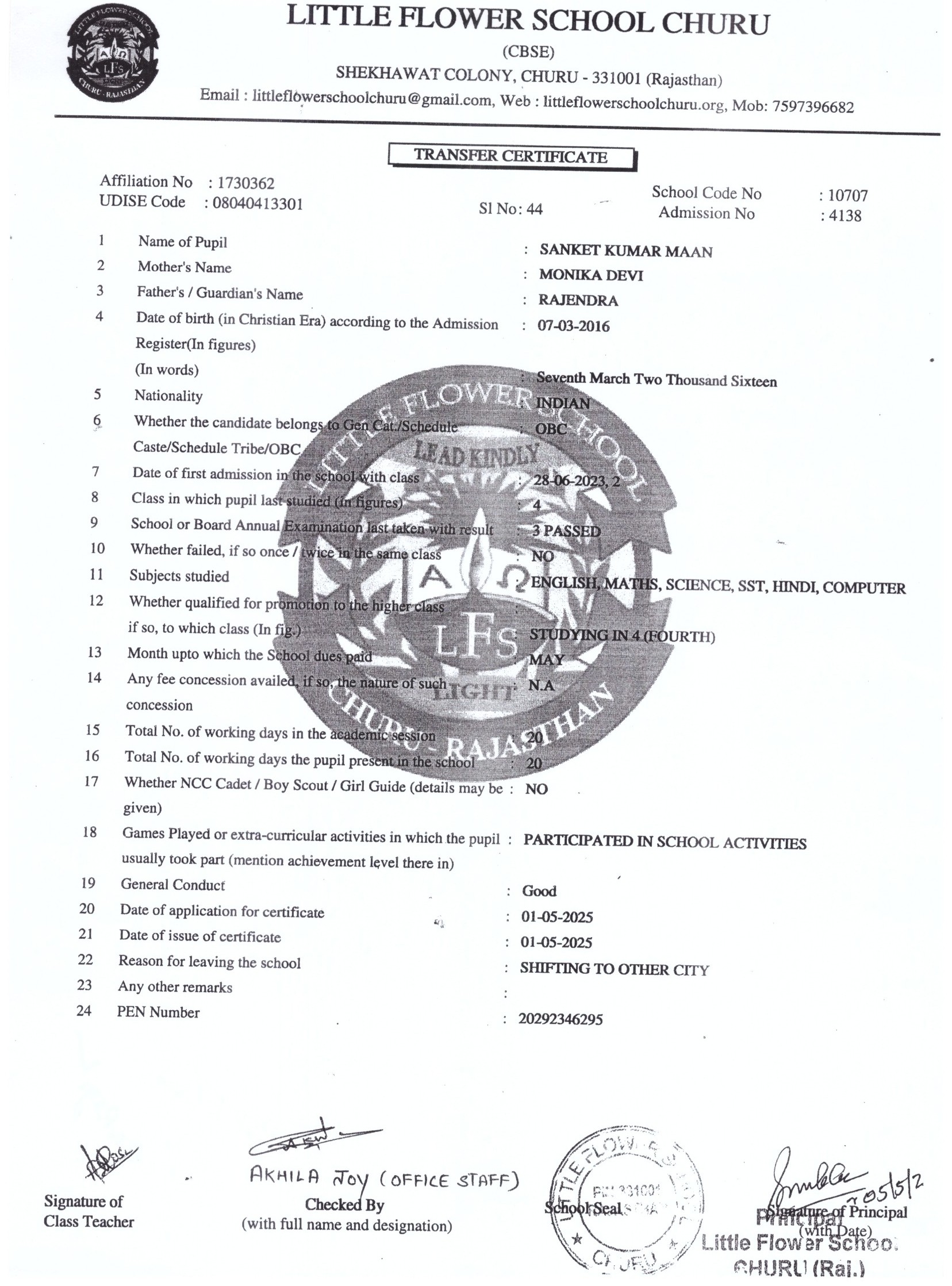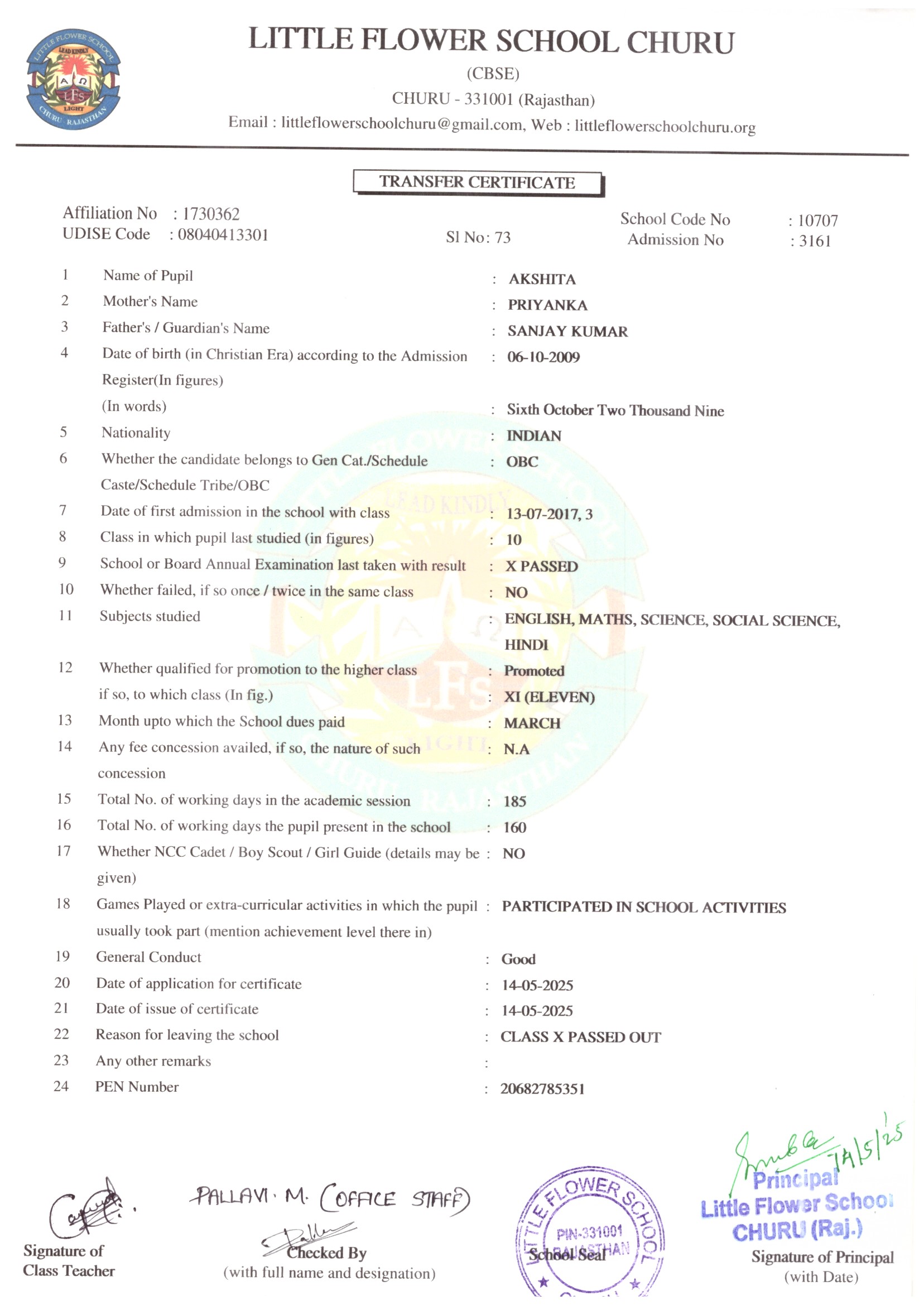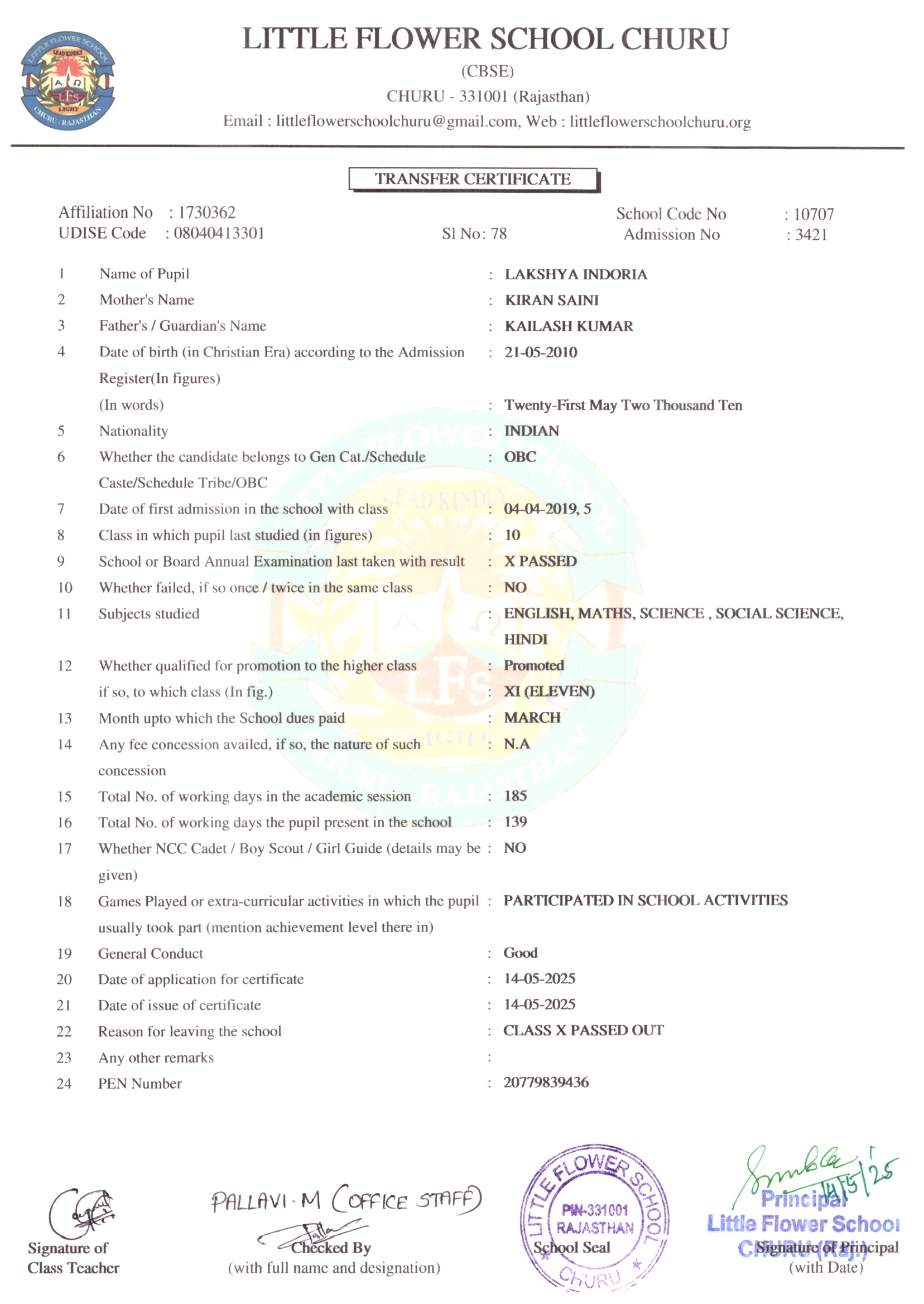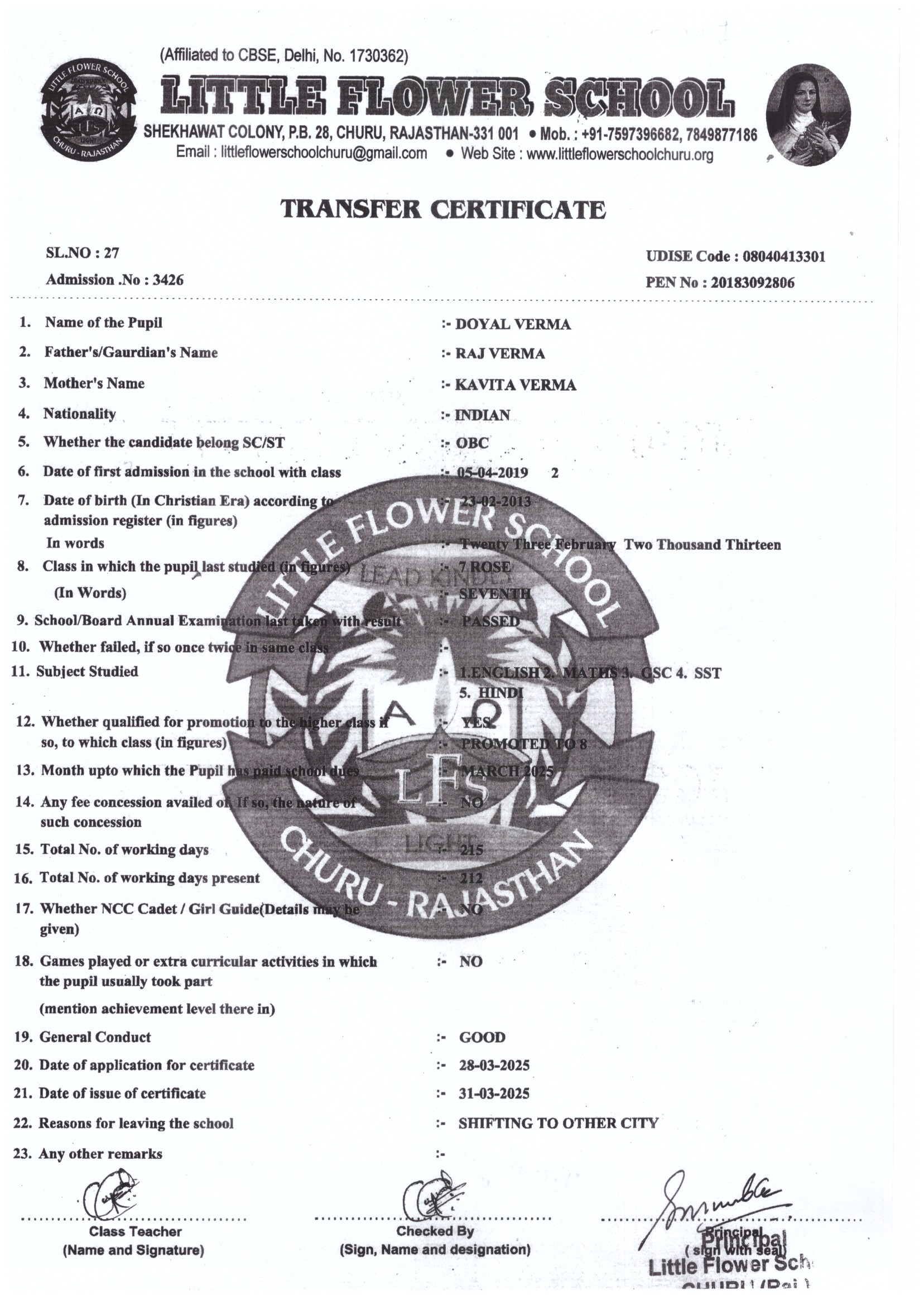 Little Flower School is Pioneer in education under CST Punjab, Rajastan.