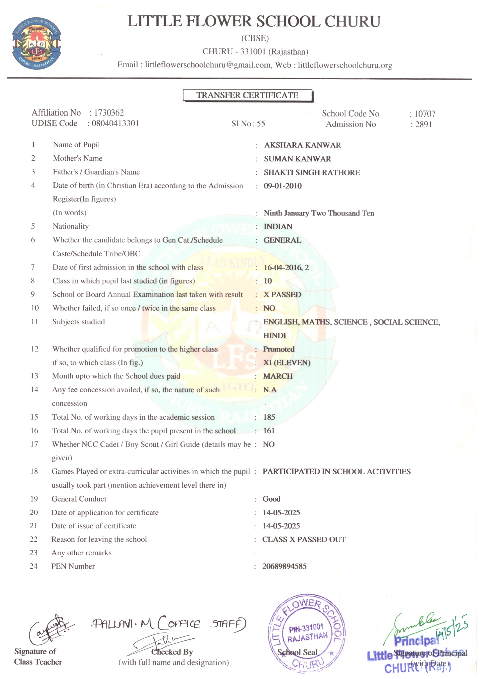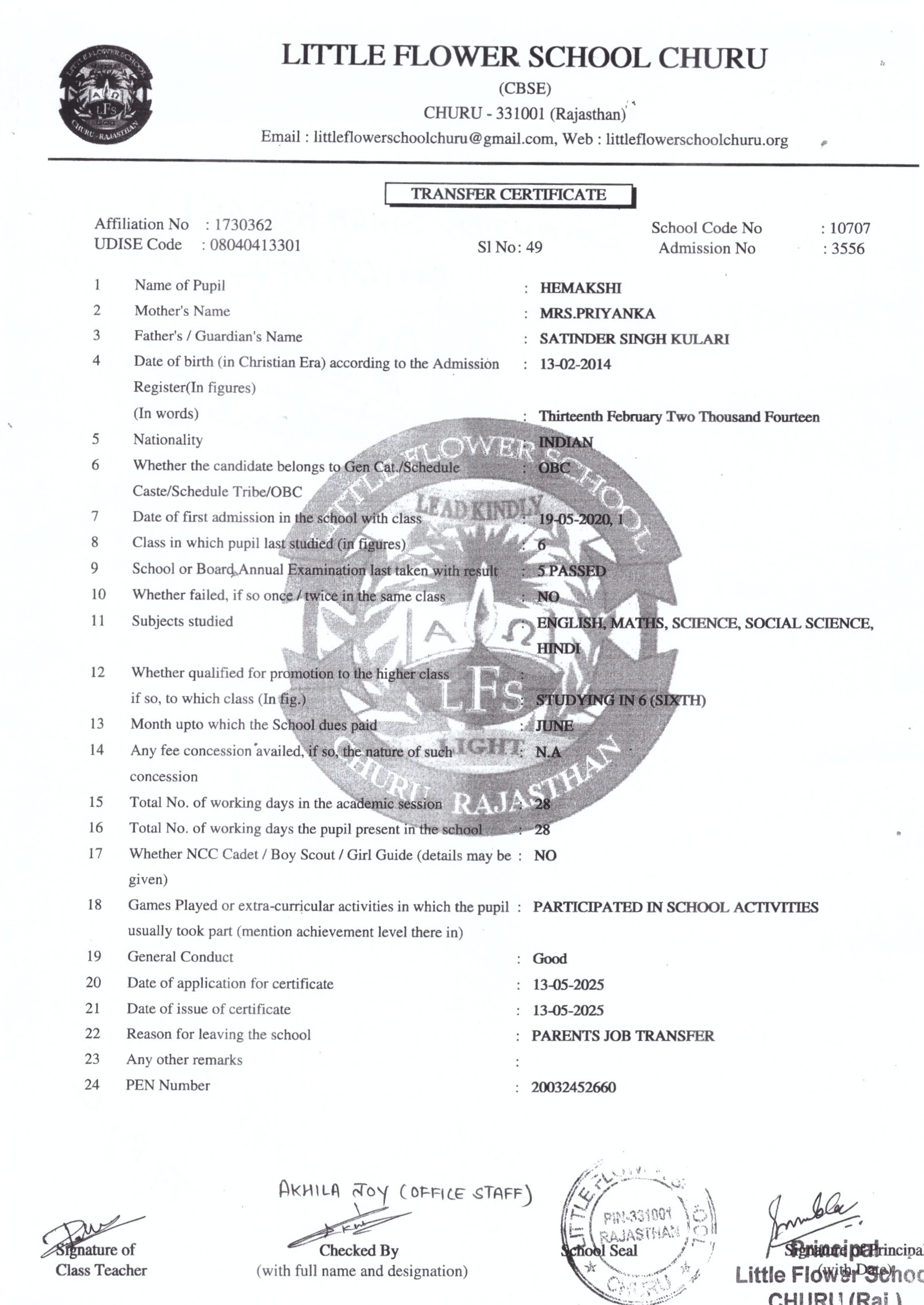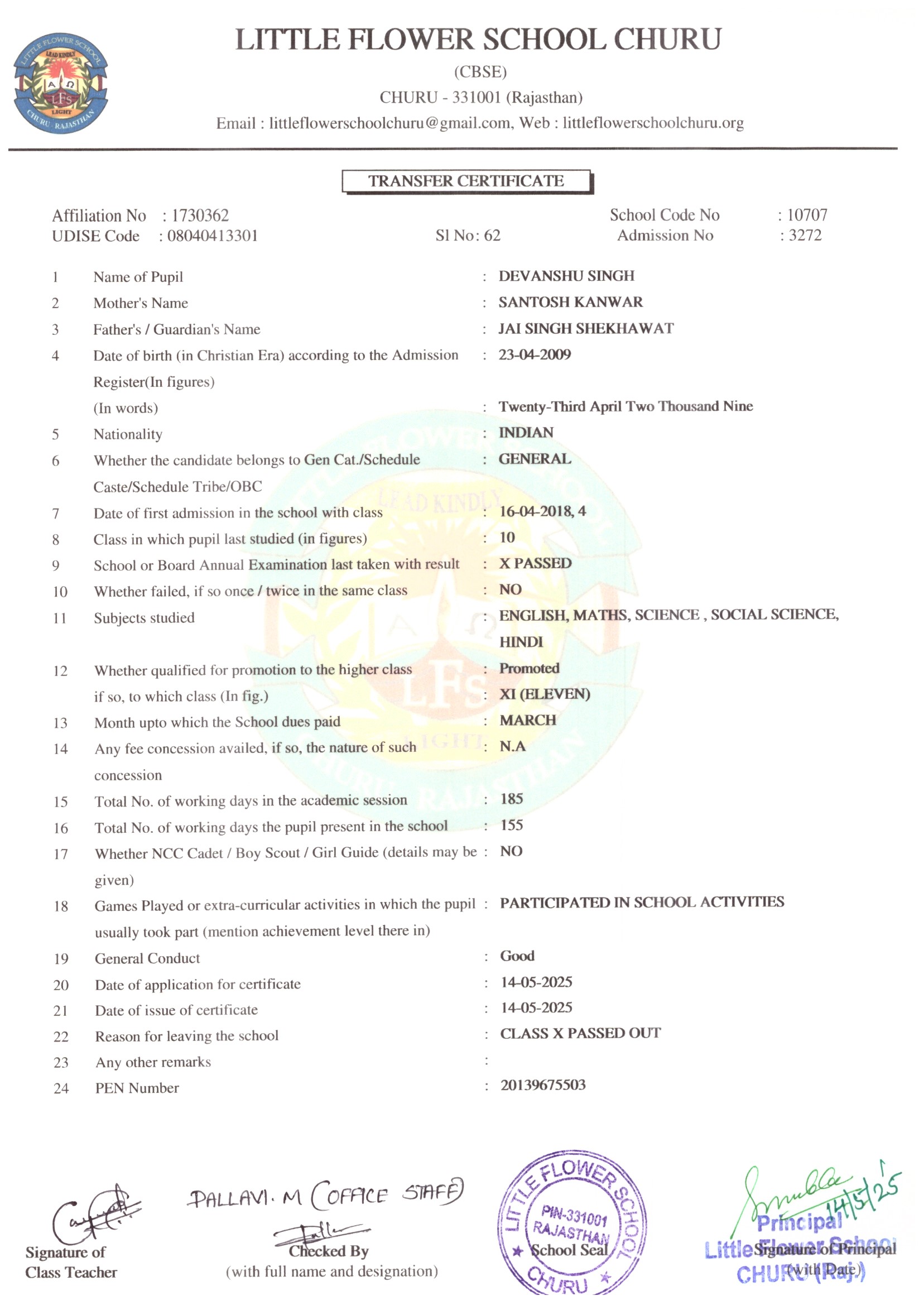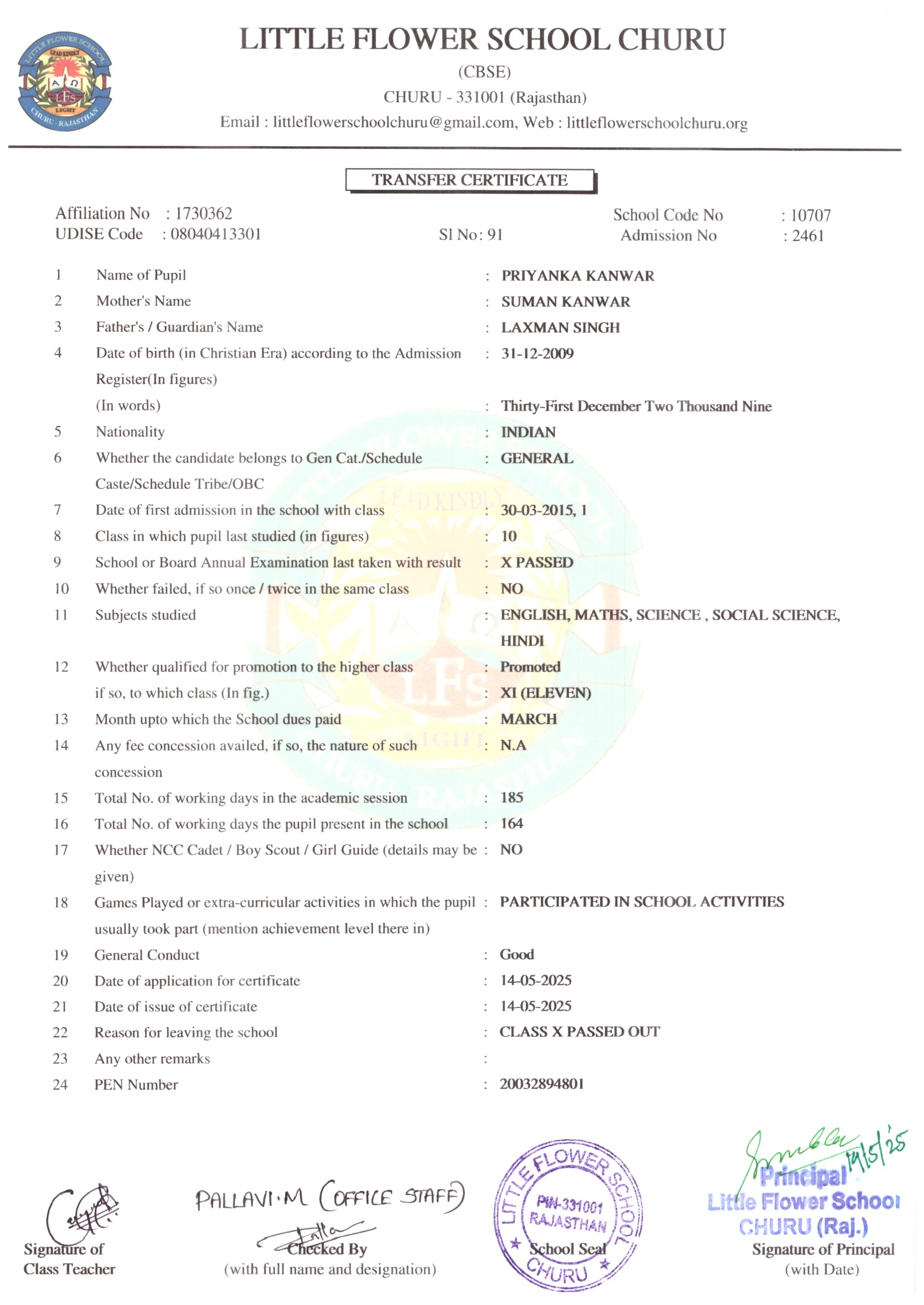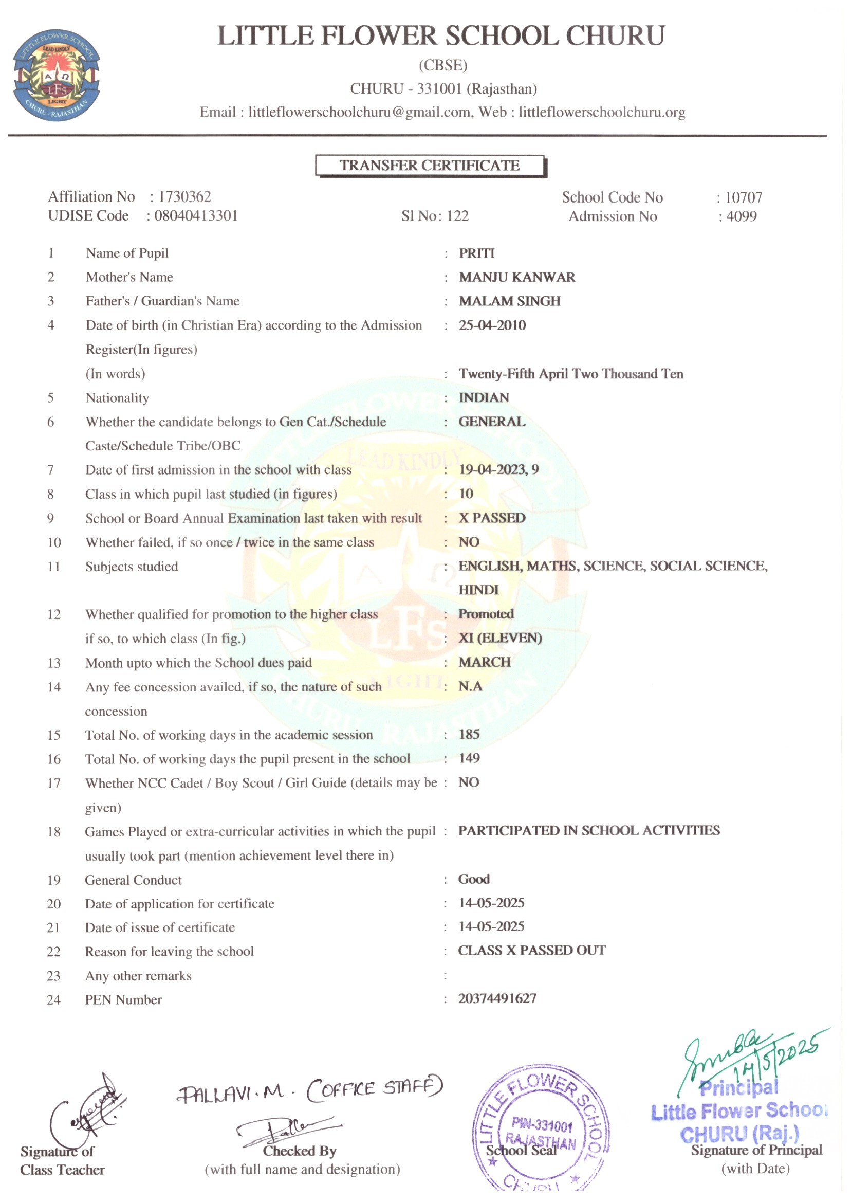 Little Flower School is Pioneer in education under CST Punjab, Rajastan.