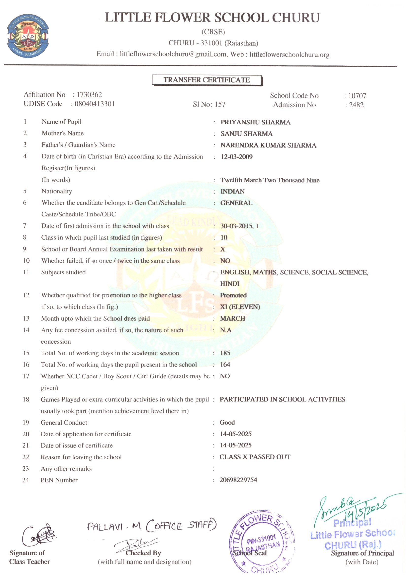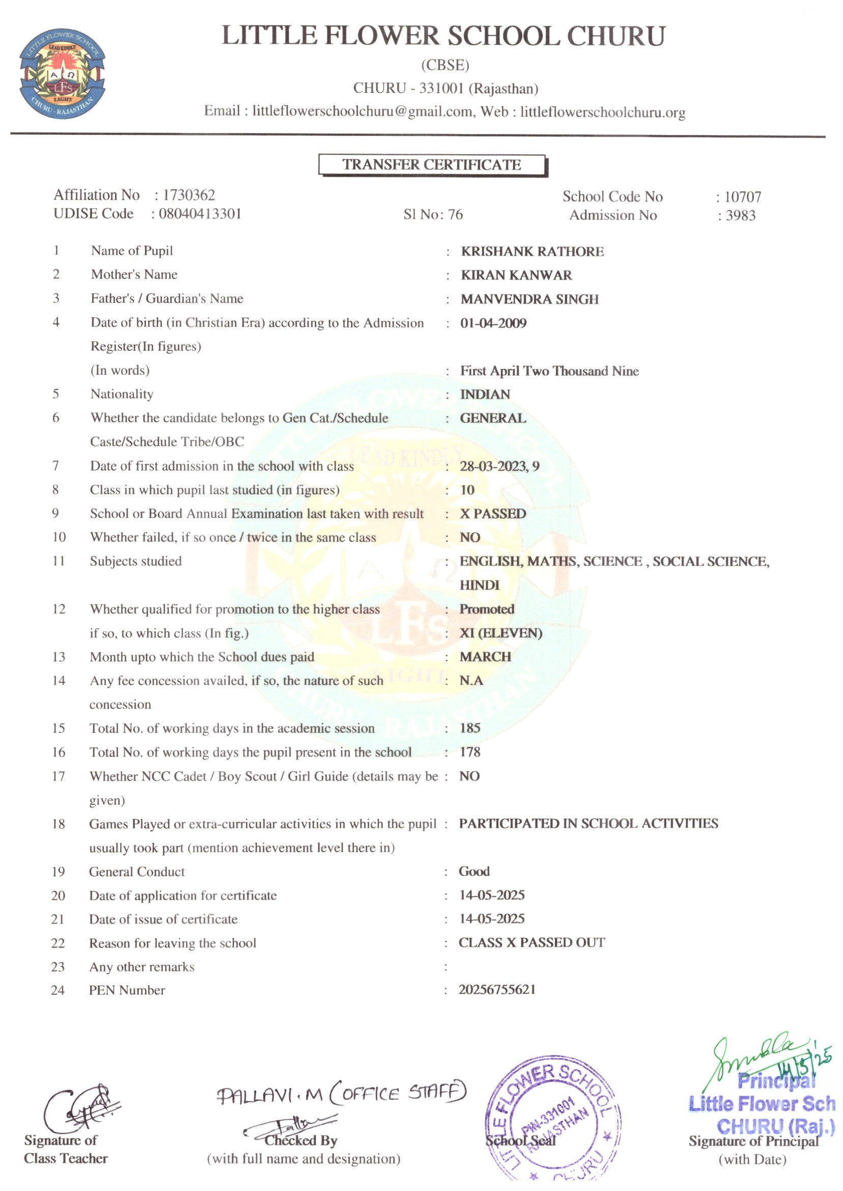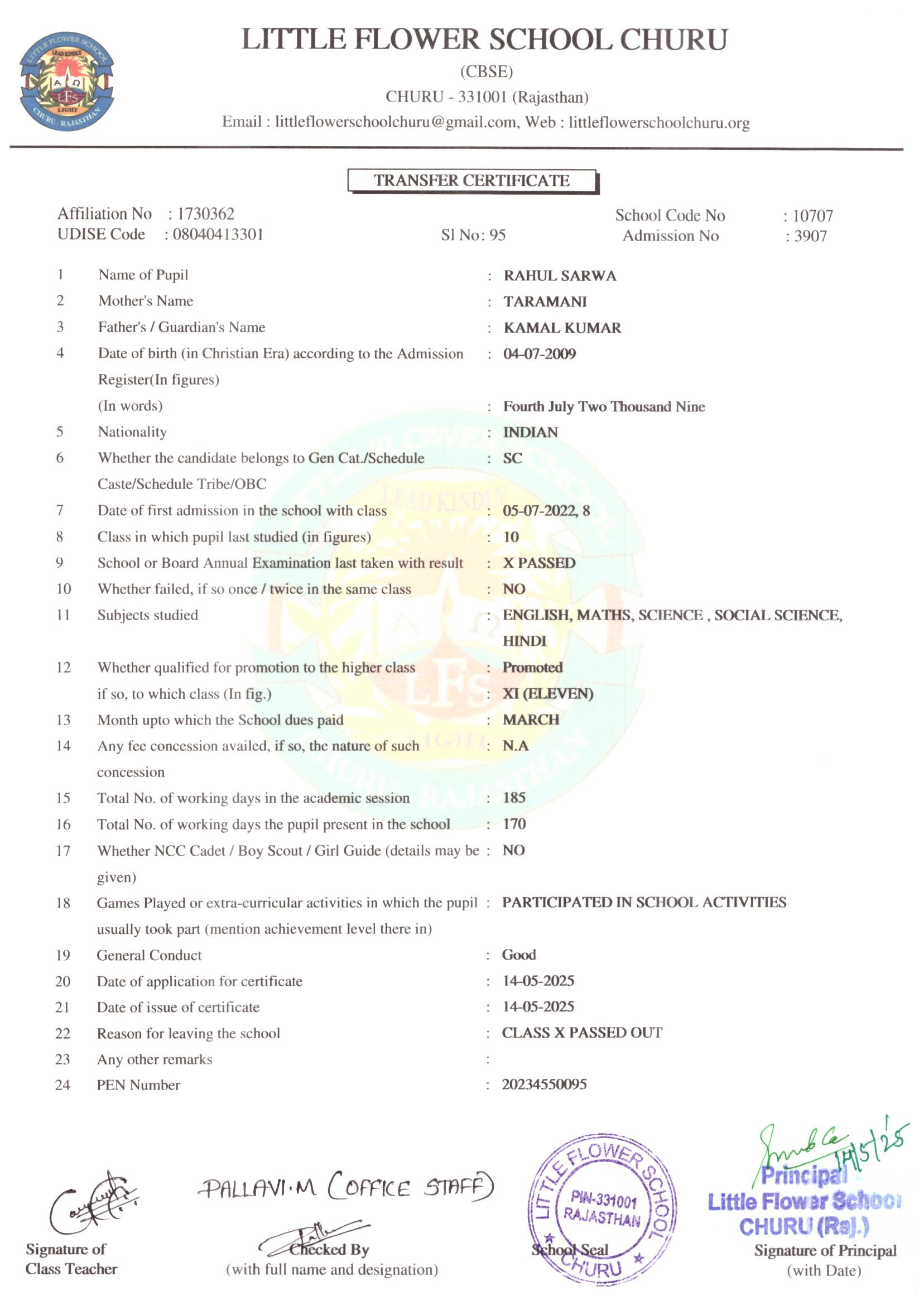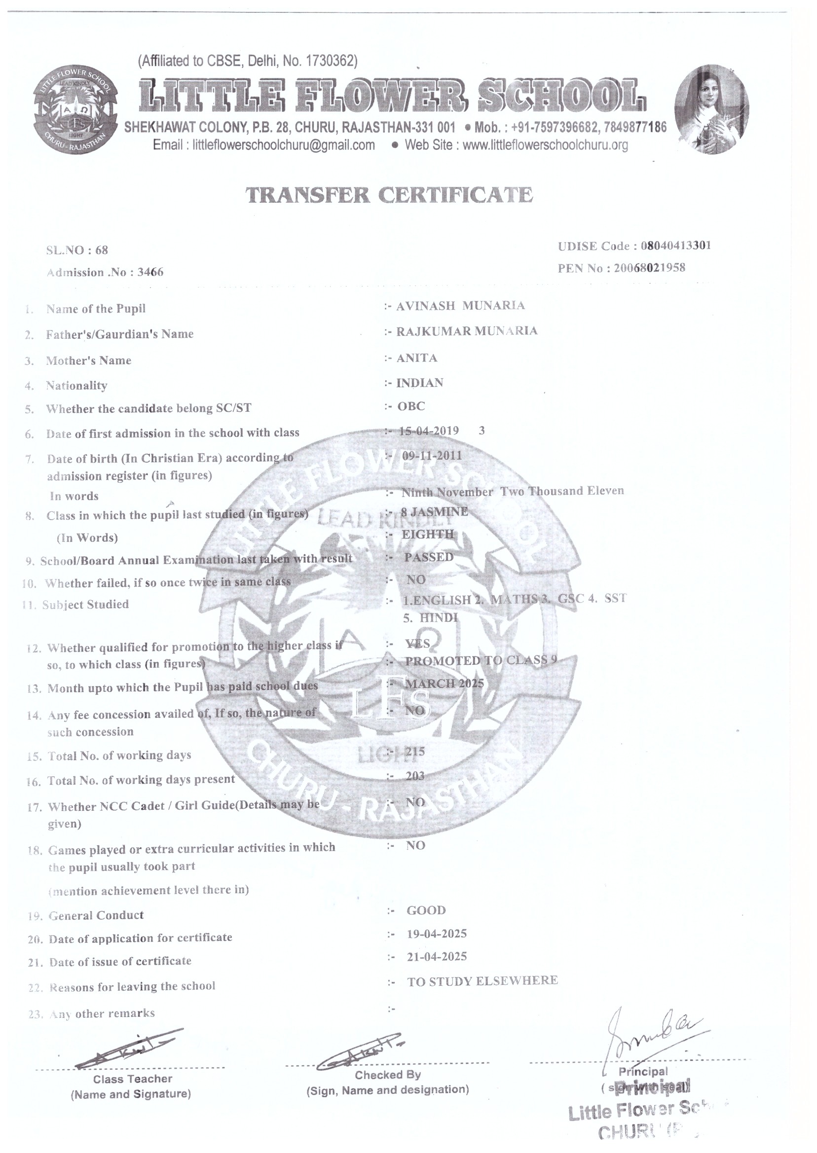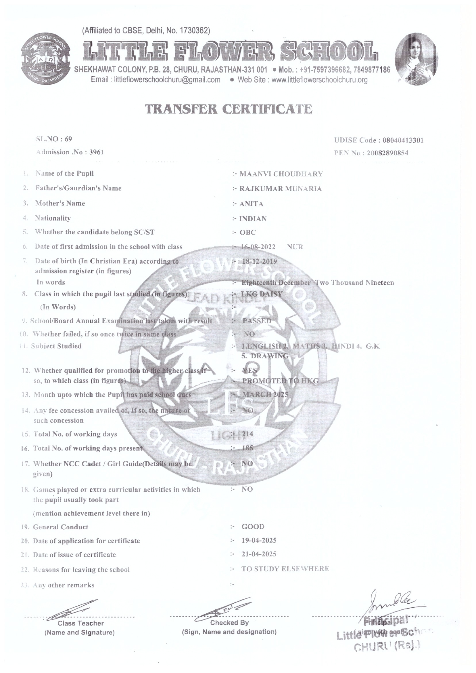 Little Flower School is Pioneer in education under CST Punjab, Rajastan.
