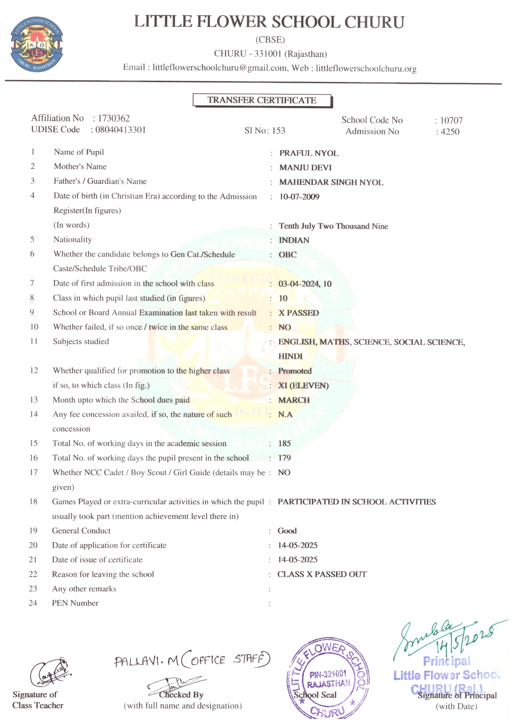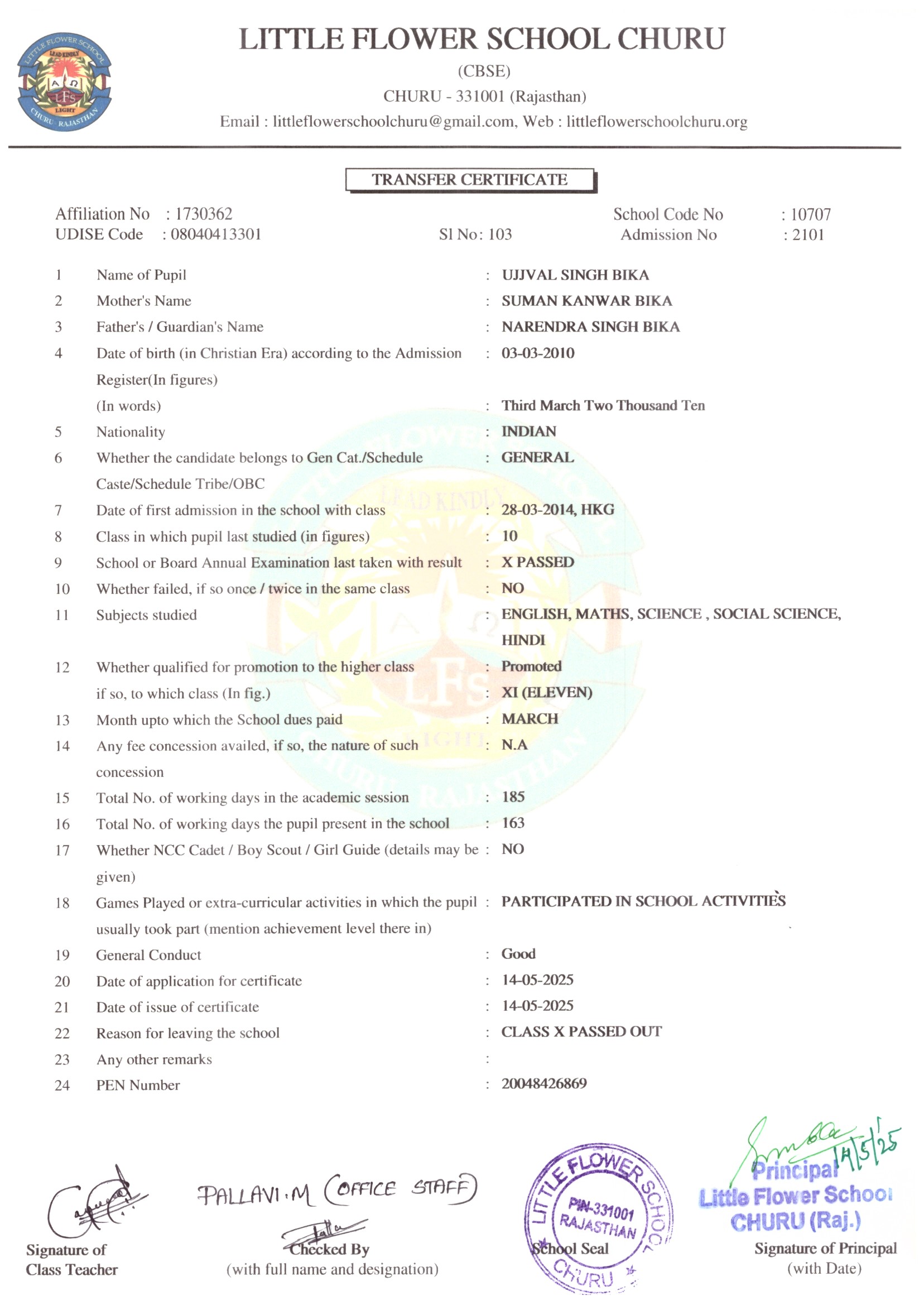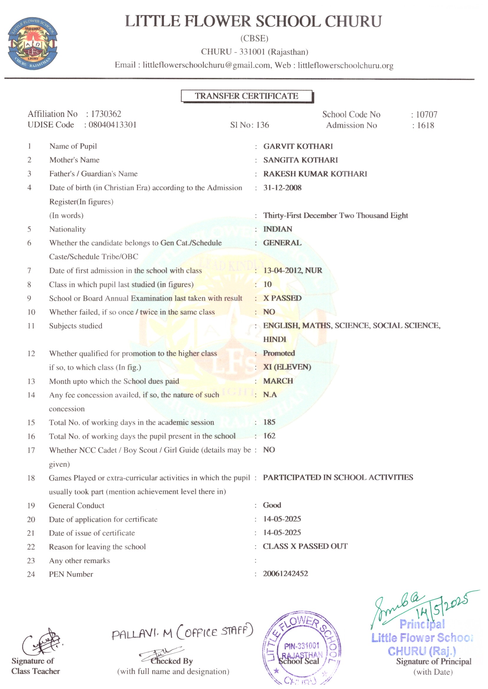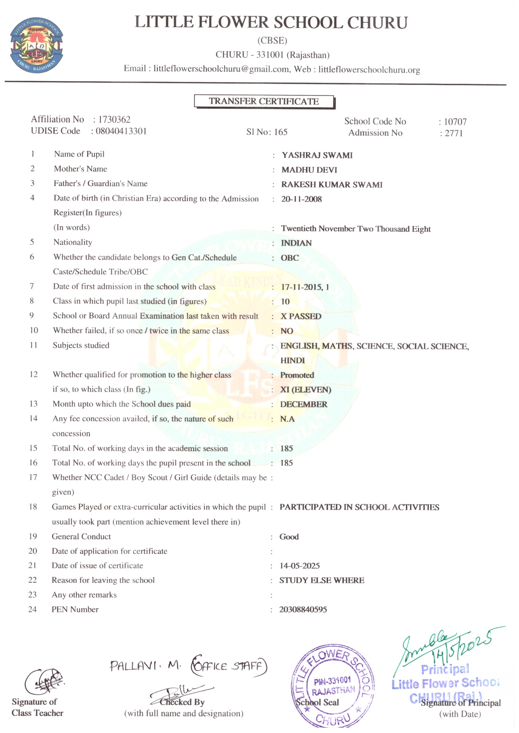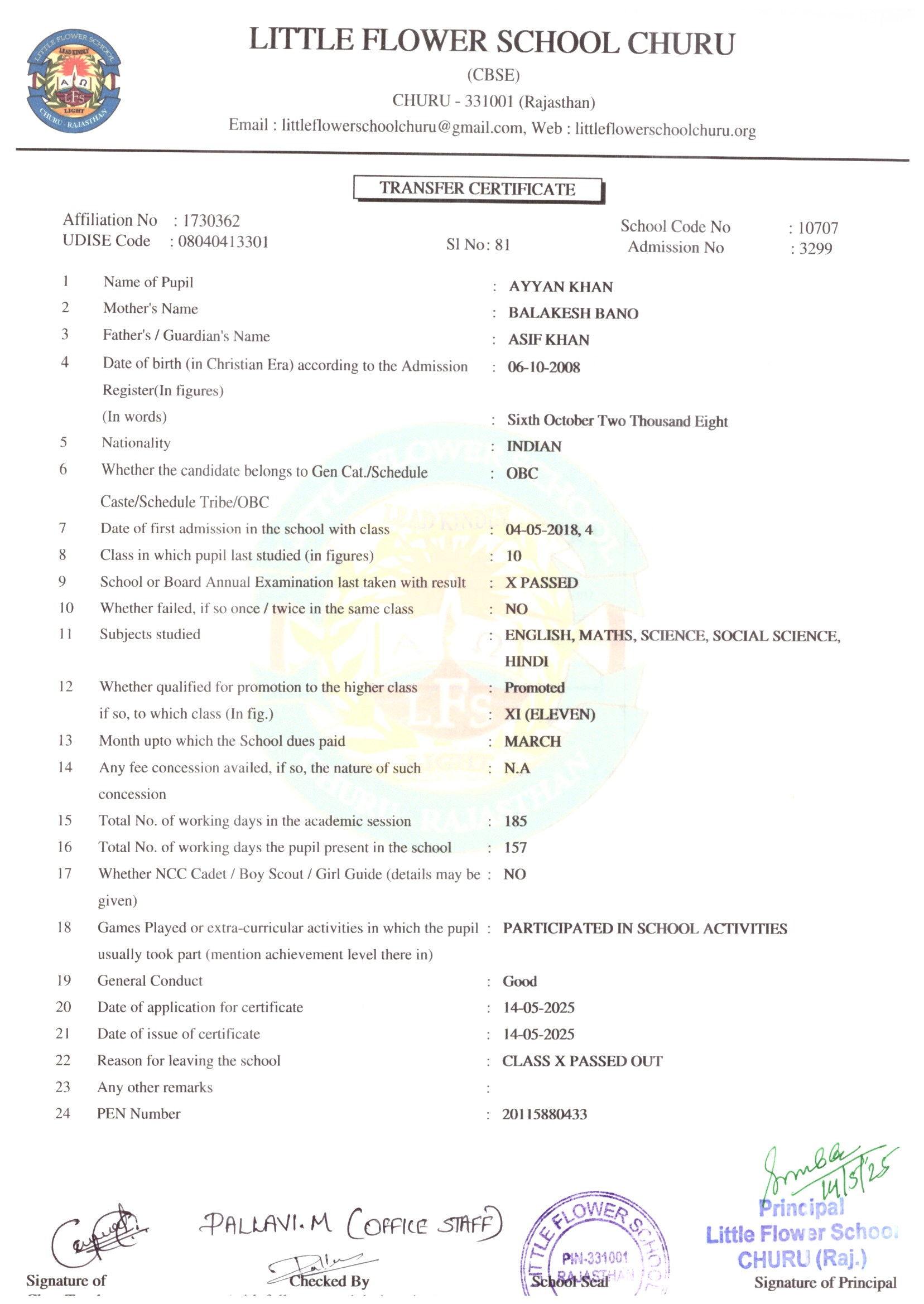 Little Flower School is Pioneer in education under CST Punjab, Rajastan.